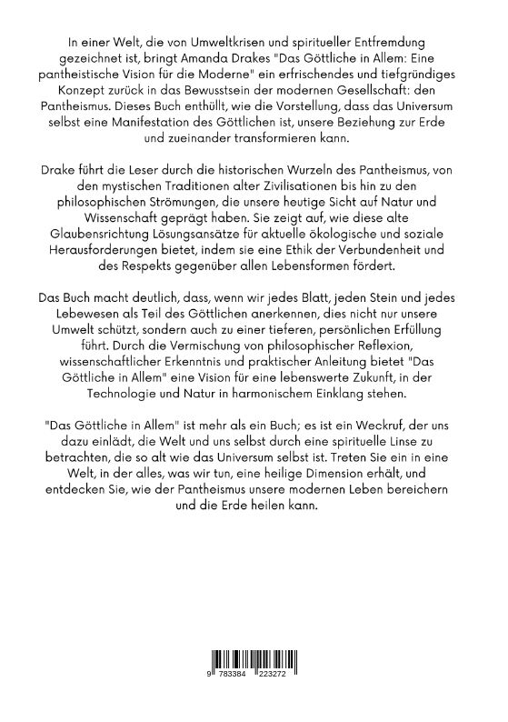 In einer Welt, die von Umweltkrisen und spiritueller Entfremdung gezeichnet ist, bringt Amanda Drakes "Das Göttliche in Allem: Eine pantheistische Vision für die Moderne" ein erfrischendes und tiefgründiges Konzept zurück in das Bewusstsein der modernen Gesell...