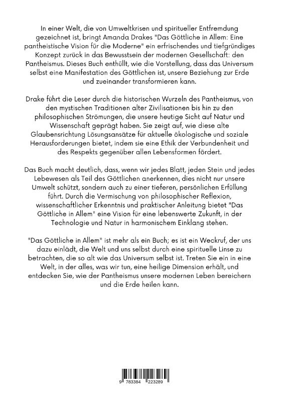 In einer Welt, die von Umweltkrisen und spiritueller Entfremdung gezeichnet ist, bringt Amanda Drakes "Das Göttliche in Allem: Eine pantheistische Vision für die Moderne" ein erfrischendes und tiefgründiges Konzept zurück in das Bewusstsein der modernen Gesell...