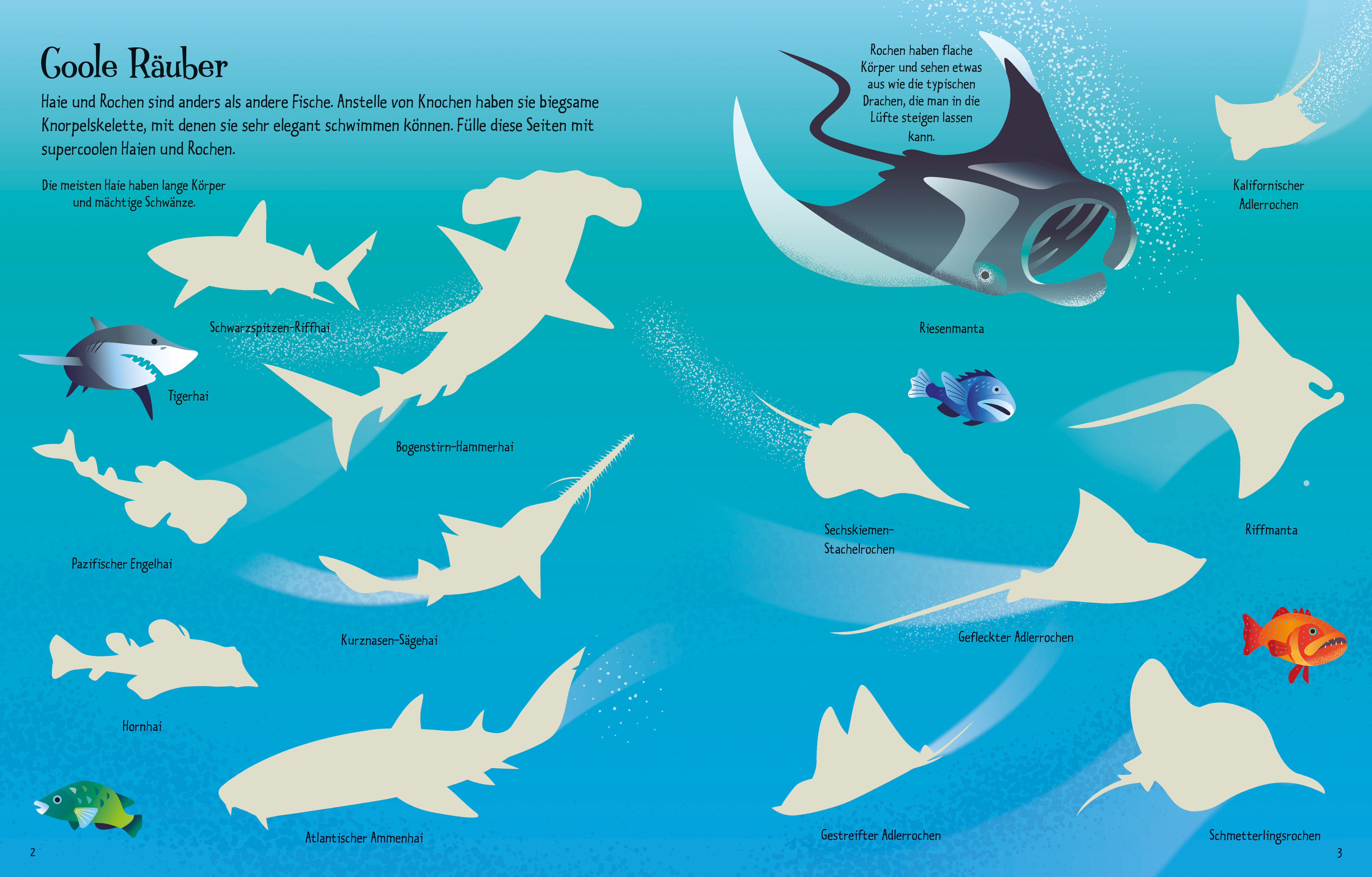 Tauche ein in die Welt der Haie und Rochen! Finde heraus, wie sie schwimmen, jagen und sich tarnen. Mit über 150 Stickern kannst du das Meer vom Korallenriff bis zur Tiefsee zum Leben erwecken. Zu Besuch bei den Jägern der Weltmeere Tauche ein in die Welt der ...