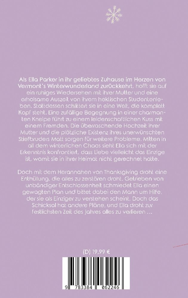 Als Ella Parker in ihr geliebtes Zuhause im Herzen von Vermont's Winterwunderland zurückkehrt, hofft sie auf ein ruhiges Wiedersehen mit ihrer Mutter und eine erholsame Auszeit von ihrem hektischen Studentenleben. Stattdessen schlittert sie in eine Welt, die k...