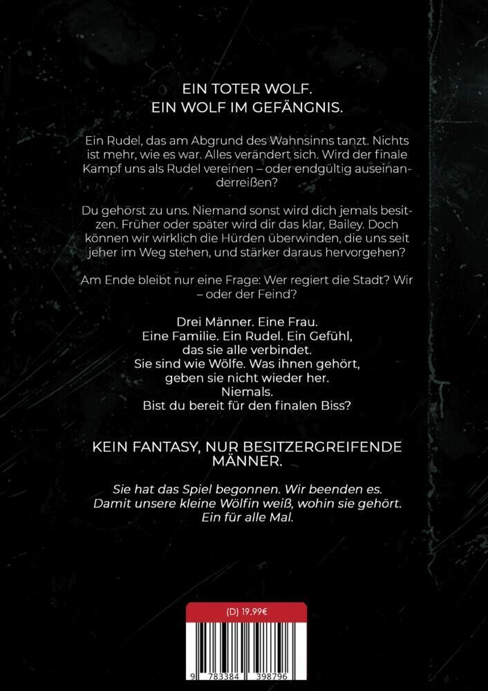 Kein Fantasy, aber dafür drei besitzergreifende Männer Ein toter Wolf. ein Wolf im Gefängnis. Ein Rudel, das am Abgrund des Wahnsinns tanzt. Nichts ist mehr, wie es war. Alles verändert sich. Wird der finale Kampf uns als Rudel vereinen oder endgültig auseinan...