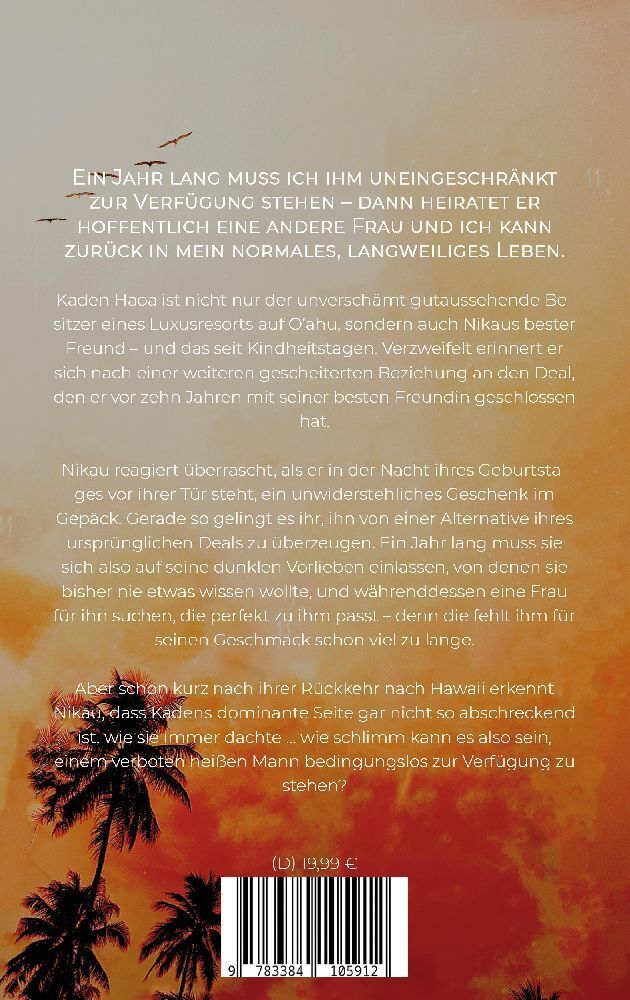 Ein Jahr lang muss ich ihm uneingeschränkt zur Verfügung stehen dann heiratet er hoffentlich eine andere Frau und ich kann zurück in mein normales, langweiliges Leben. Kaden Haoa ist nicht nur der unverschämt gutaussehende Besitzer eines Luxusresorts auf O'ahu...