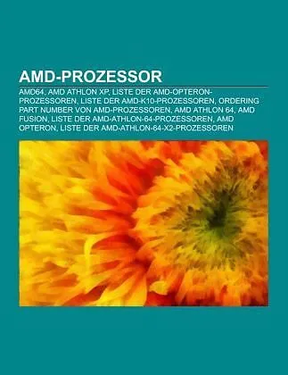 Quelle: Wikipedia. Seiten: 75. Kapitel: AMD64, AMD Athlon XP, Liste der AMD-Opteron-Prozessoren, Liste der AMD-K10-Prozessoren, Ordering Part Number von AMD-Prozessoren, AMD Athlon 64, AMD Fusion, Liste der AMD-Athlon-64-Prozessoren, AMD Opteron, Liste der AMD...
