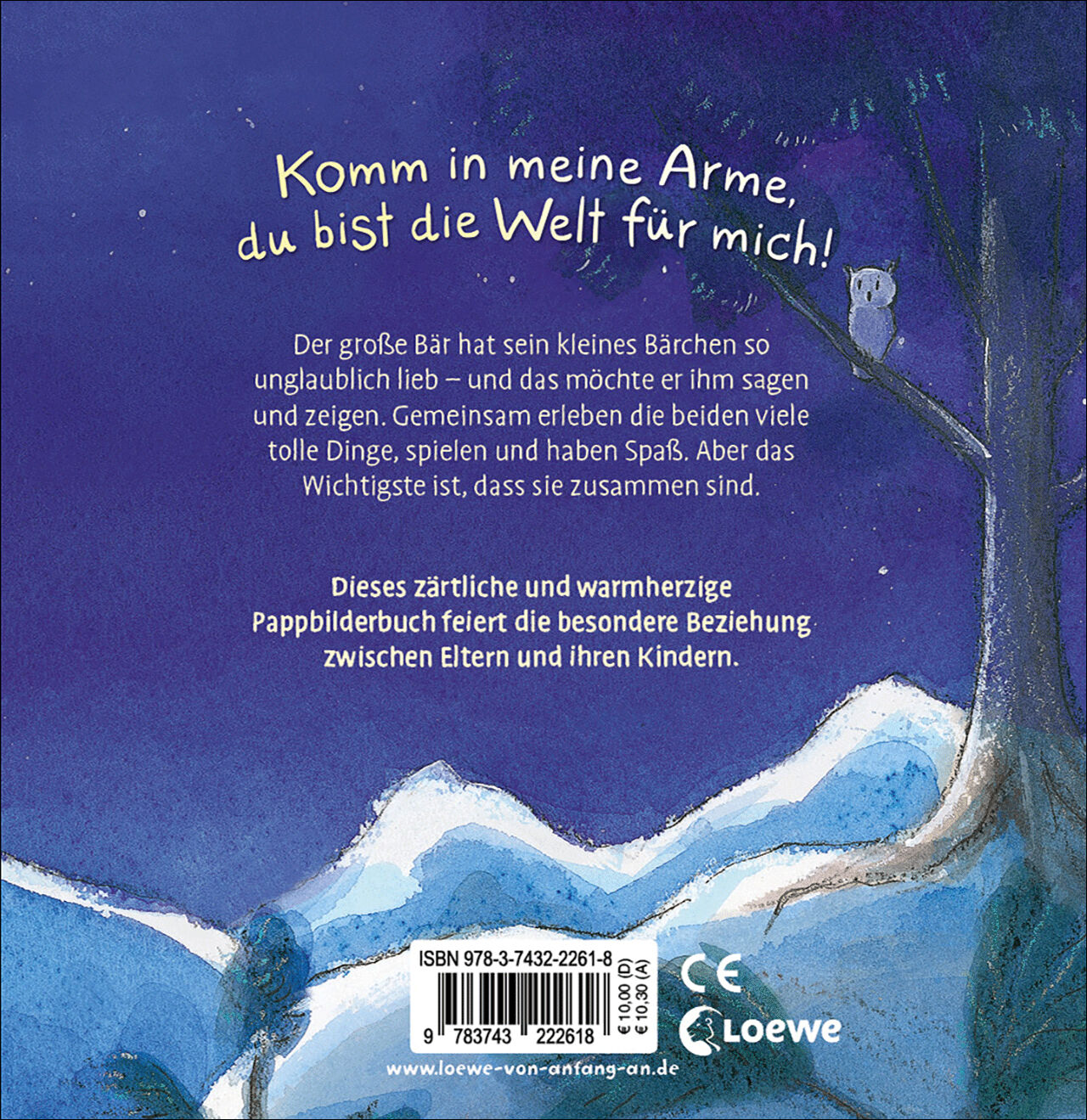 Komm in meine Arme, du bist die Welt für mich! Der große Bär hat sein kleines Bärchen so unglaublich lieb und das möchte er ihm sagen und zeigen. Gemeinsam erleben die beiden viele tolle Dinge, spielen und haben Spaß. Aber das Wichtigste ist, dass sie zusammen...