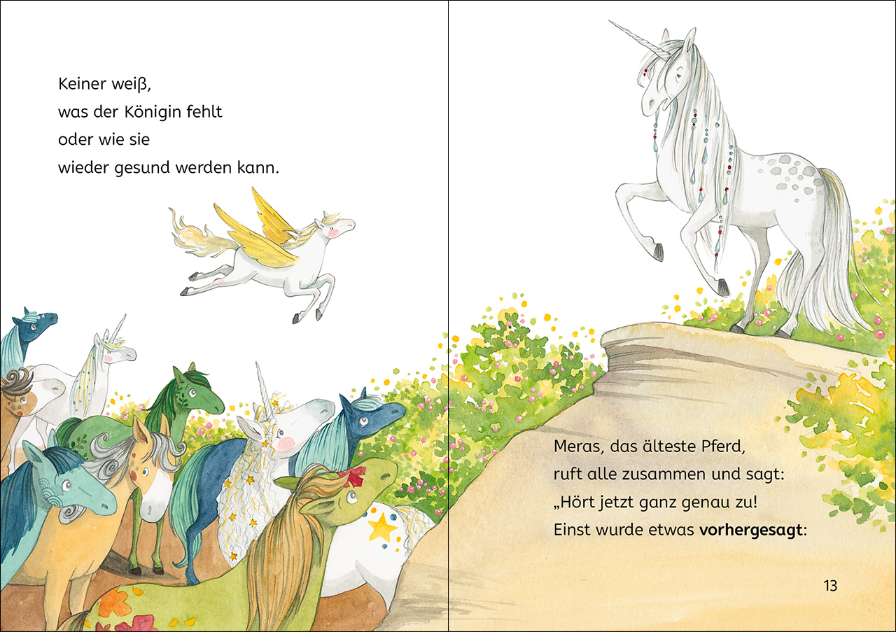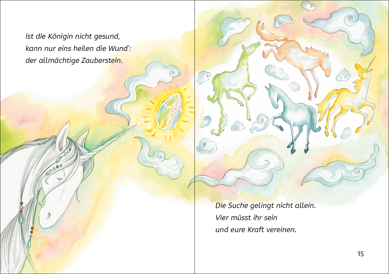 Die Königin der magischen Pferde ist krank. Nur der Zauberstein kann sie heilen. Vier Pferde werden ausgewählt und sollen sich auf die Suche nach dem Stein machen. Können die vier Freunde die Königin rechtzeitig heilen? Lesenlernen ganz einfach - mit den Erstl...