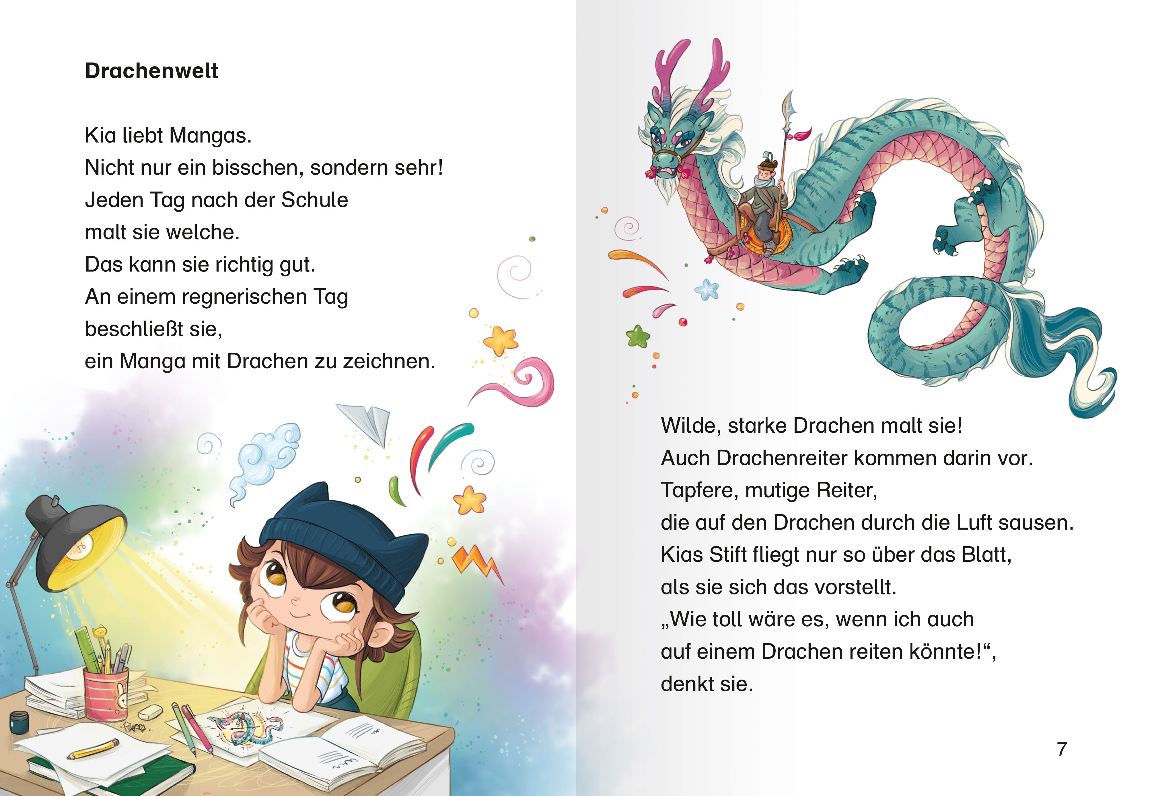 Lesen lernen wie im Flug! Kia liebt Mangas! Als sie eines Tages eine Geschichte mit Drachen zeichnet, gelangt sie auf magische Weise in deren Welt. Beim großen Drachenfest geschieht etwas Unglaubliches: Der Sonnendrache Sol wählt Kia aus! So wird Kia zur Drach...