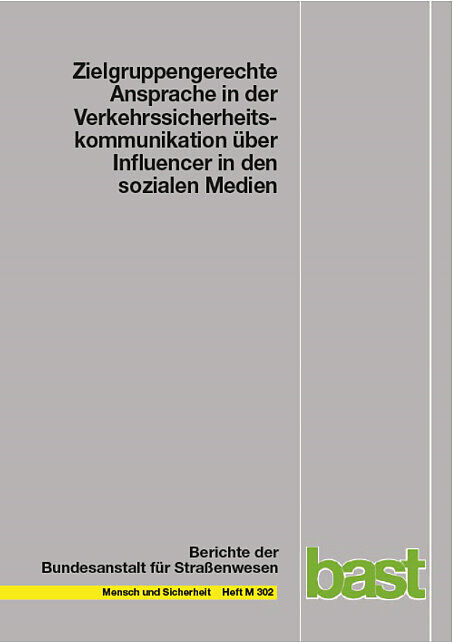 M 302: Amelie Duckwitz, Walter Funk, Catherine Schliebs, unter Mitarbeit von Christopher Hermanns: Zielgruppengerechte Ansprache in der Verkehrssicherheitskommunikation über Influencer in den sozialen Medien Forschungsstand und Handlungsempfehlungen 168 S., 10...