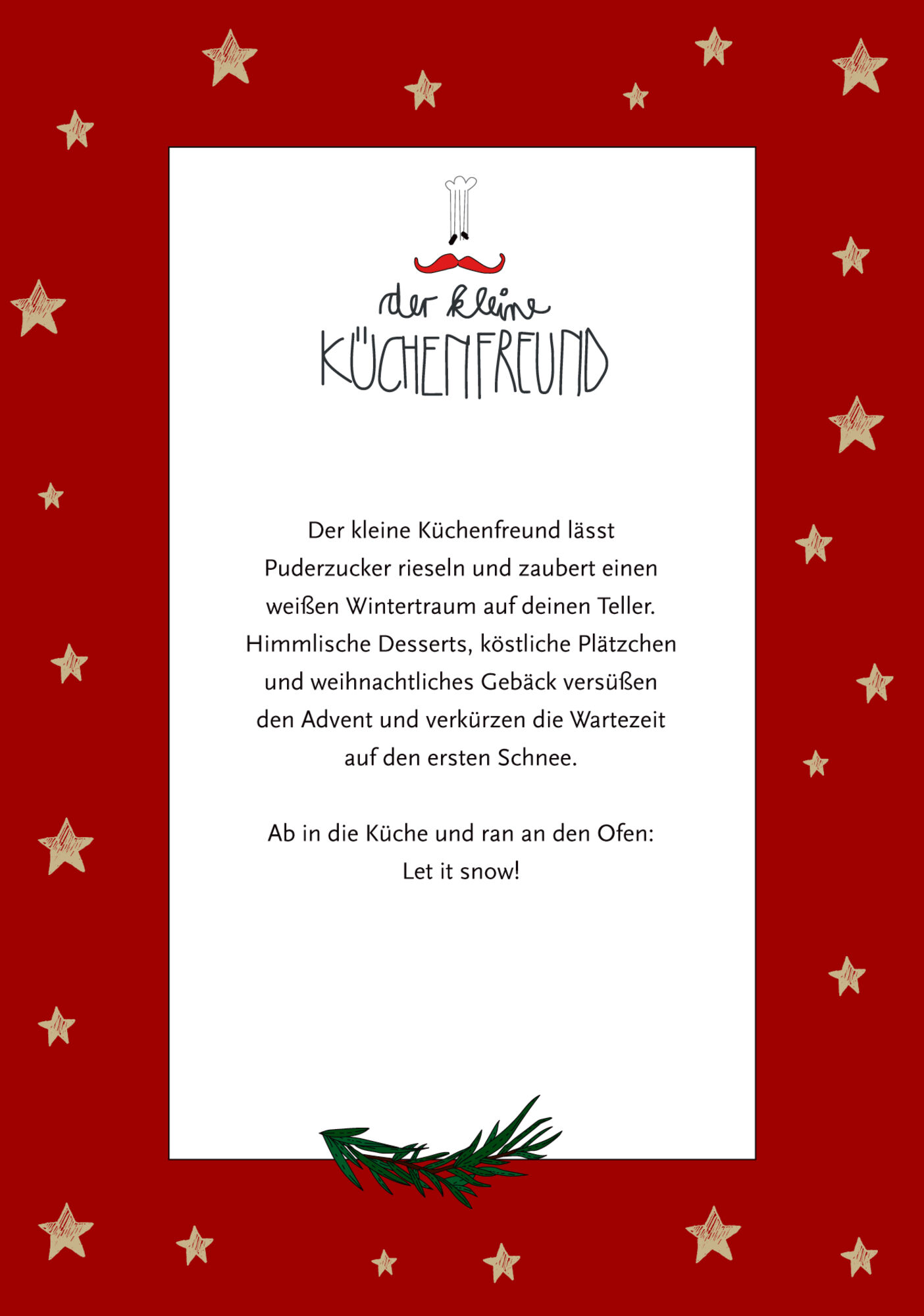 Der kleine Küchenfreund lässt Puderzucker rieseln und zaubert einen weißen Wintertraum auf deinen Teller. Himmlische Desserts, köstliche Plätzchen und weihnachtliches Gebäck versüßen den Advent und verkürzen die Wartezeit auf den ersten Schnee. Ab in die Küche...