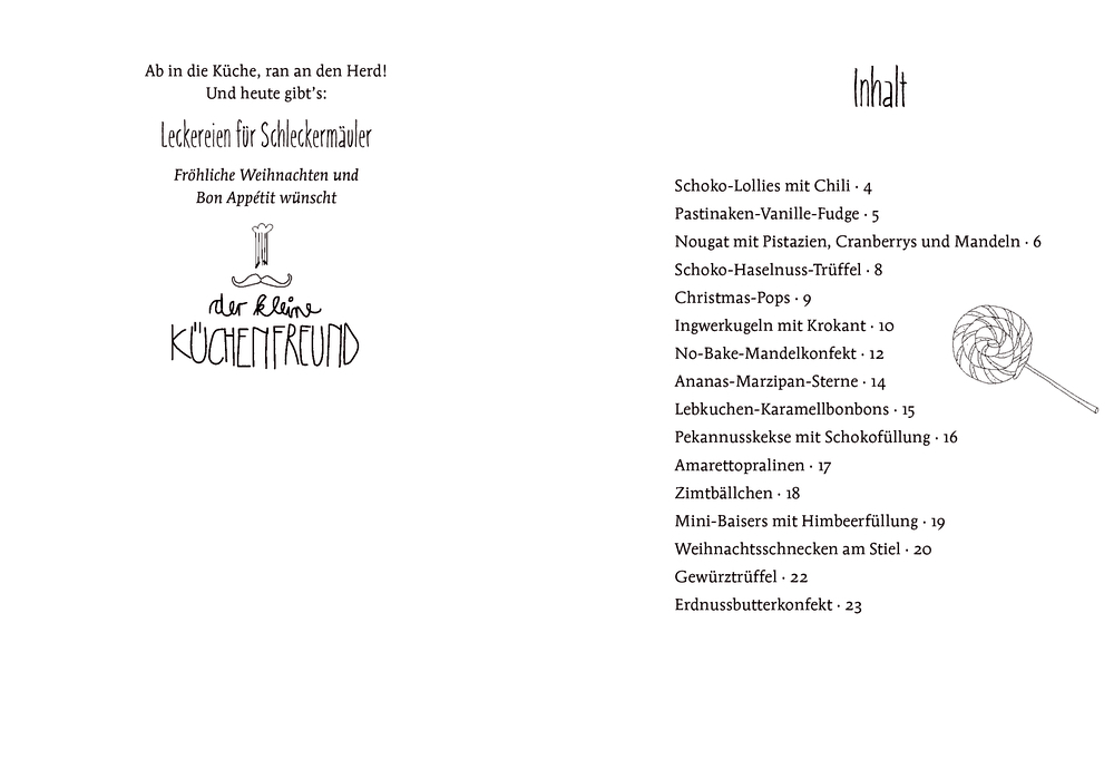 Ein Rezeptheft im praktischen Karten-Format. Mit lustigen Sprüchen und leckeren Rezepten ergänzt das Heft jedes Geschenk an Weihnachten! In der Adventszeit darf zuckersüß genascht werden! Schokoladentrüffel, Karamellbonbons, feines Konfekt mit Ingwer und Zimt...