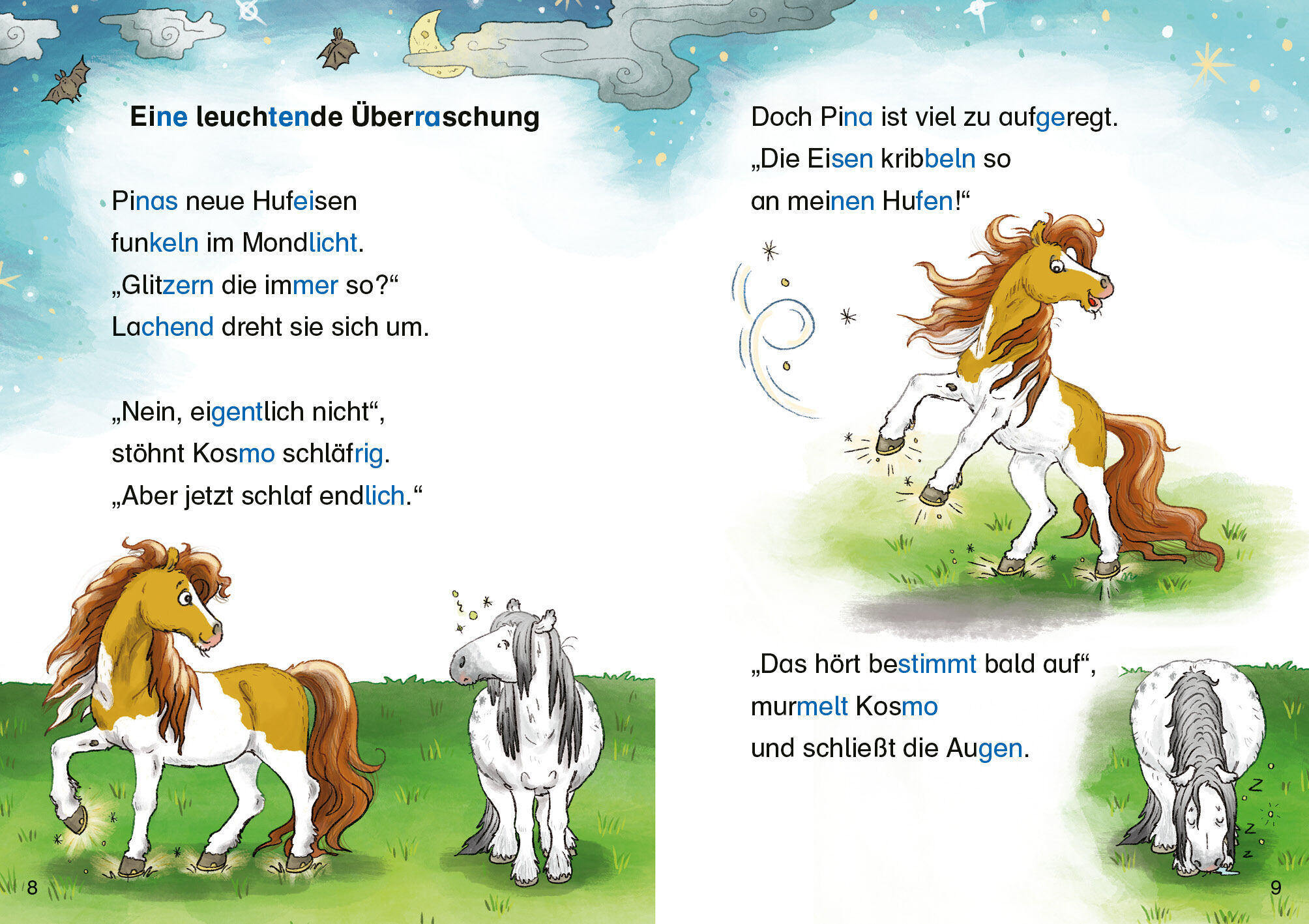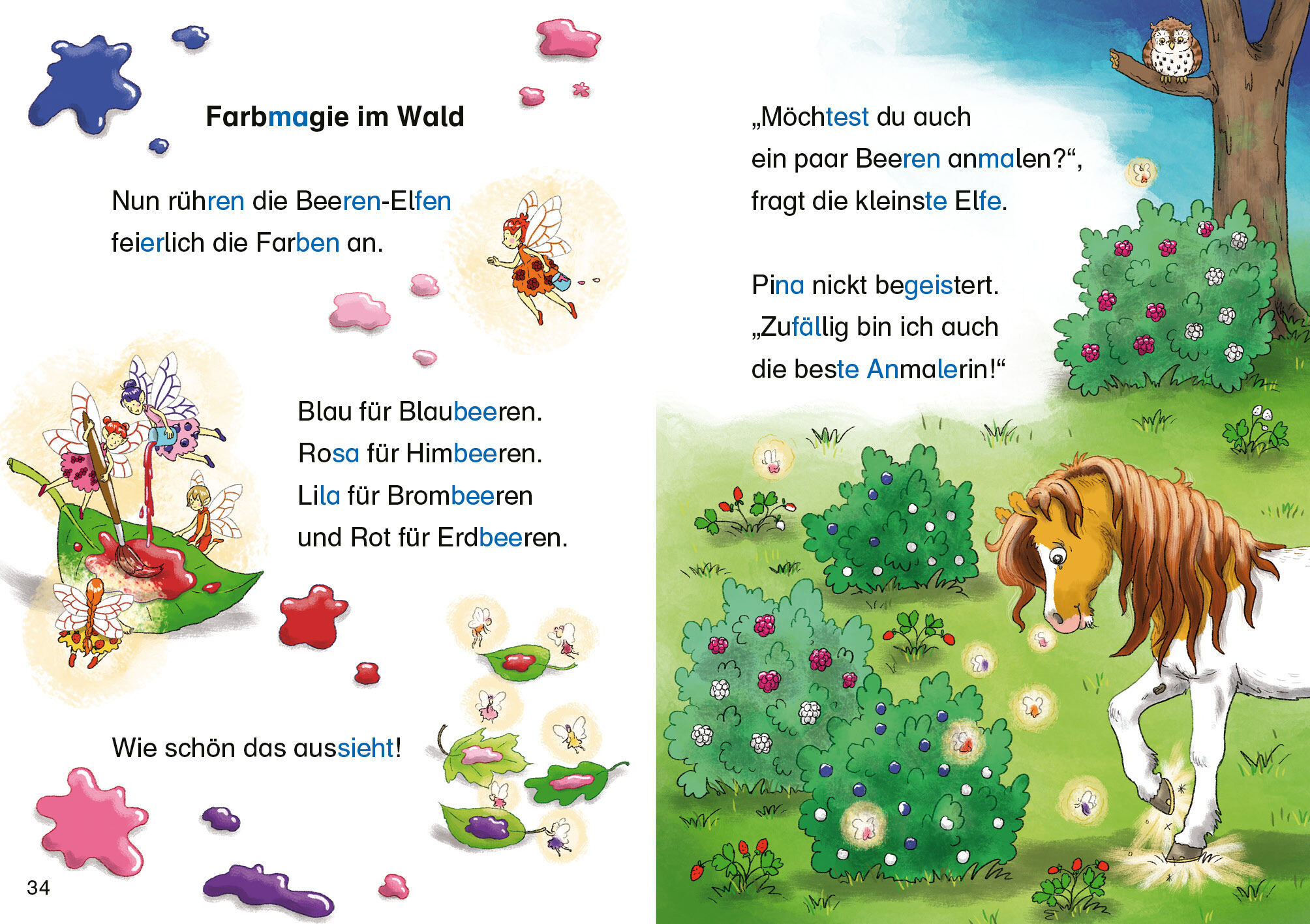 Ponyabenteuer zum Lesenlernen voller Magie, Witz und Herz Pony Pina kann es nicht glauben: Ihre neuen Hufeisen sind magisch! Sie leuchten ihr den Weg in den geheimen Elfenwald, wo Pina dringend gebraucht wird. Denn im Fluss ist kein Wasser mehr, um die Beeren ...