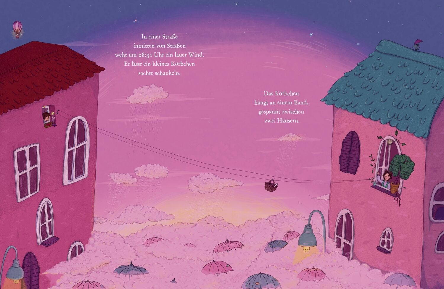 In einer Straße, inmitten von Straßen, schaukelt ein Körbchen sachte im Wind. Das Körbchen hängt an einem Band, gespannt zwischen drei ganz besonderen Freunden: Malte & Oßkar und Phia. Jeden Tag hüpft ein Brief über das Band. Und Glück. Doch als ein kleiner Unfall große Ängste weckt, beginnt für Malte und seinen Taubenfreund eine Reise in eine wahrlich wundersame Welt. Eine Welt, die leuchtet und glimmert, die wabert und flimmert. Es ist eine Welt, die von Abschieden erzählt - und vom Für-Immer-Bleiben. Eine Welt, in der schon jemand auf sie wartet.