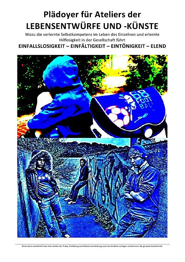 EINFALLSLOSIGKEIT EINFÄLTIGKEIT EINTÖNIGKEIT ELEND Die Erwachsenen begehen eine barbarische Sünde, indem sie das Schöpfertum des Kindes durch den Raub seiner Welt zerstören, unter herangebrachtem, totem Wissensstoff ersticken und auf bestimmte, ihm fremde Ziel...