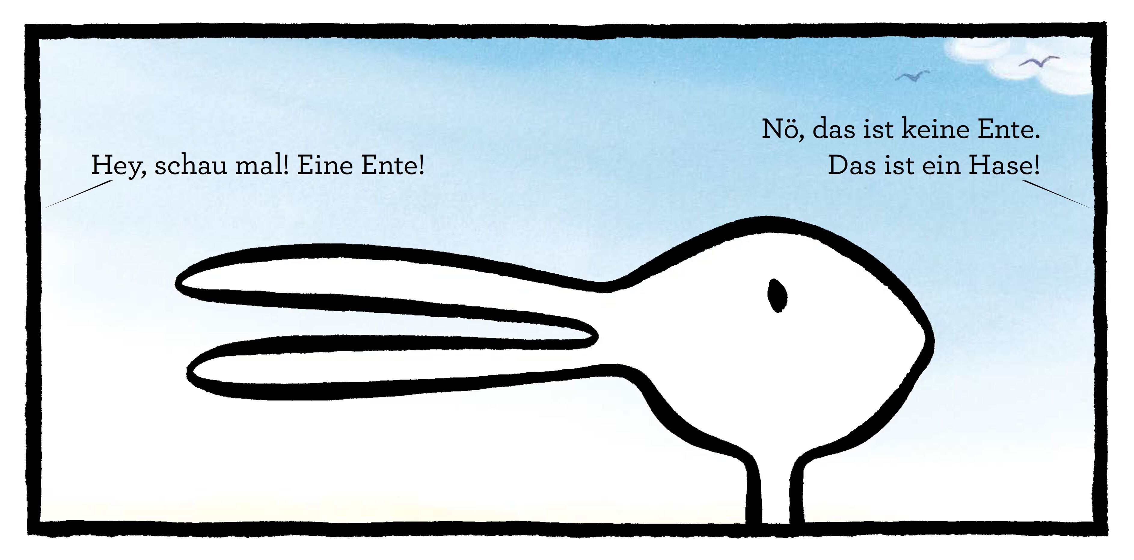 Alle, die hier einen Hasen sehen, wackeln mal mit den Ohren! Alle, die hier eine Ente sehen, nicken mal mit dem Kopf! Alle, die Spaß an optischer Täuschung haben und eines der lustigsten Bücher der Bilderbuchgeschichte haben möchten, laufen mal flink in die Bu...