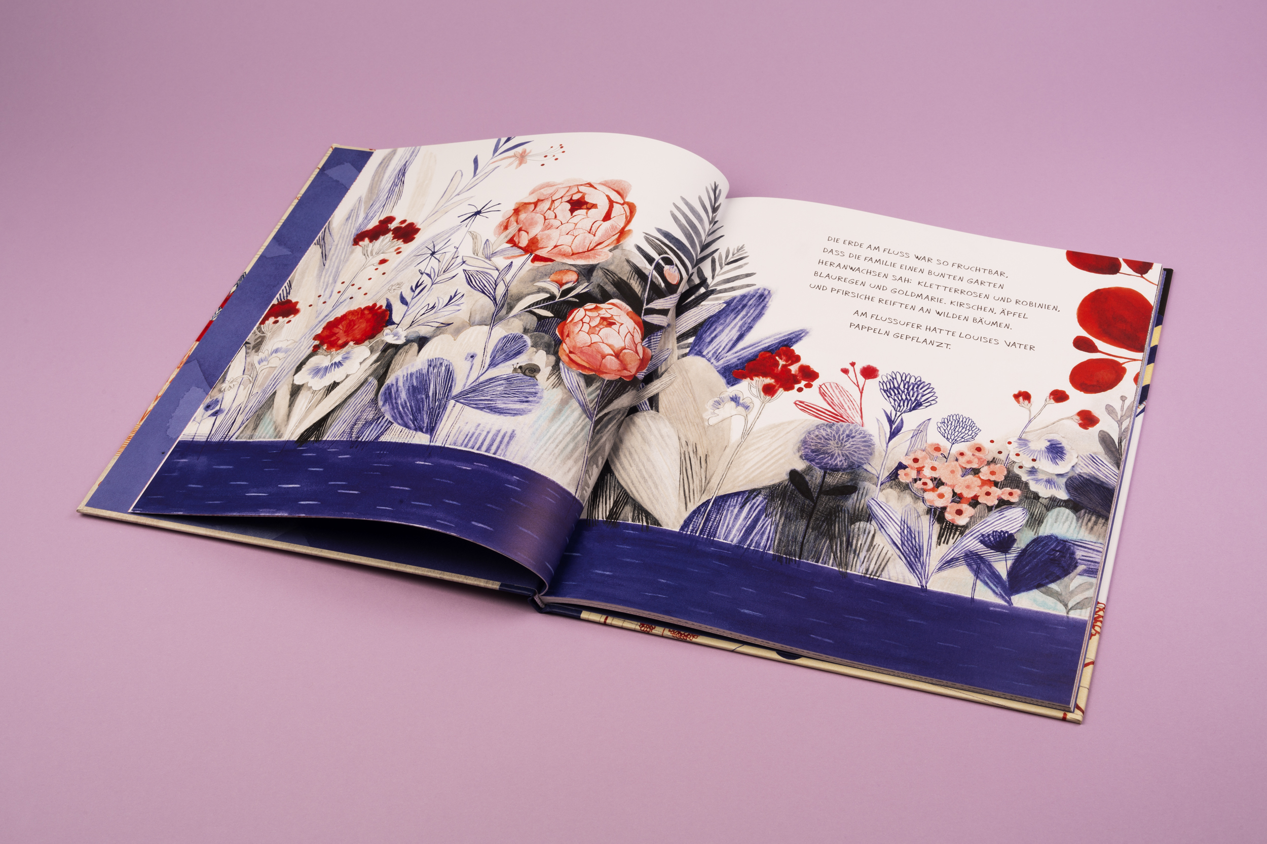 In der Textilwerkstatt der Eltern lernt Louise alles über Blüten, Tiere, Farben und Gewebe. Sie erfährt, dass Purpurrot von Schnecken stammt, Gelb von Pflanzen, schwarze Wolle vom Schaf, alles Leben aber aus dem Fluss. Als ihre Mutter stirbt, beschließt Louise...