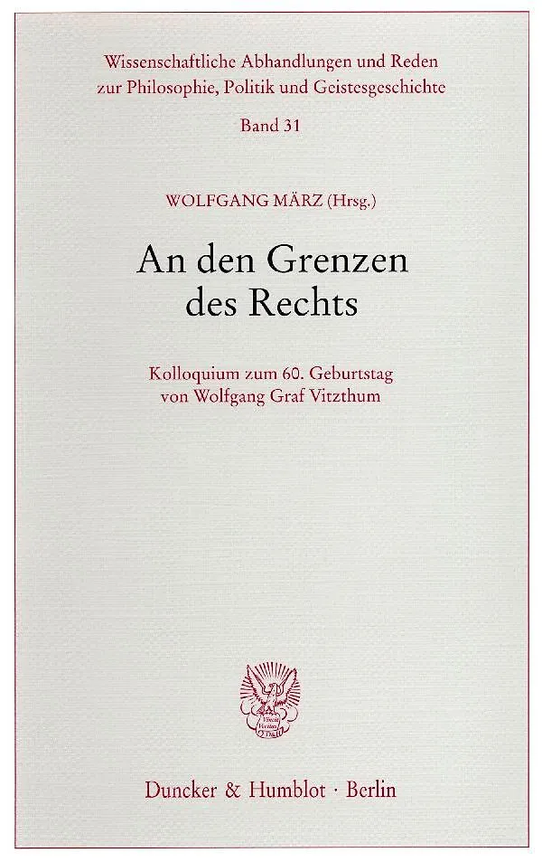 Der Sammelband vereinigt die Vorträge, die im Rahmen des Kolloquiums "An den Grenzen des Rechts" aus Anlass des 60. Geburtstags von Wolfgang Graf Vitzthum am 24. November 2001 in Tübingen von seinen Schülern gehalten wurden. "An den Grenzen des Rechts" - und n...