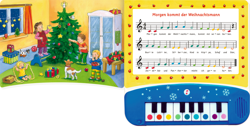 Zehn der beliebtesten Weihnachtslieder können dank der klaren Farbkodierung einfach nachgespielt werden: ganz ohne Vorkenntnisse! Die echten Klaviertasten lassen sich besonders leicht drücken. Der schöne Klang und die fröhliche und kindgerechte Notendarstellun...