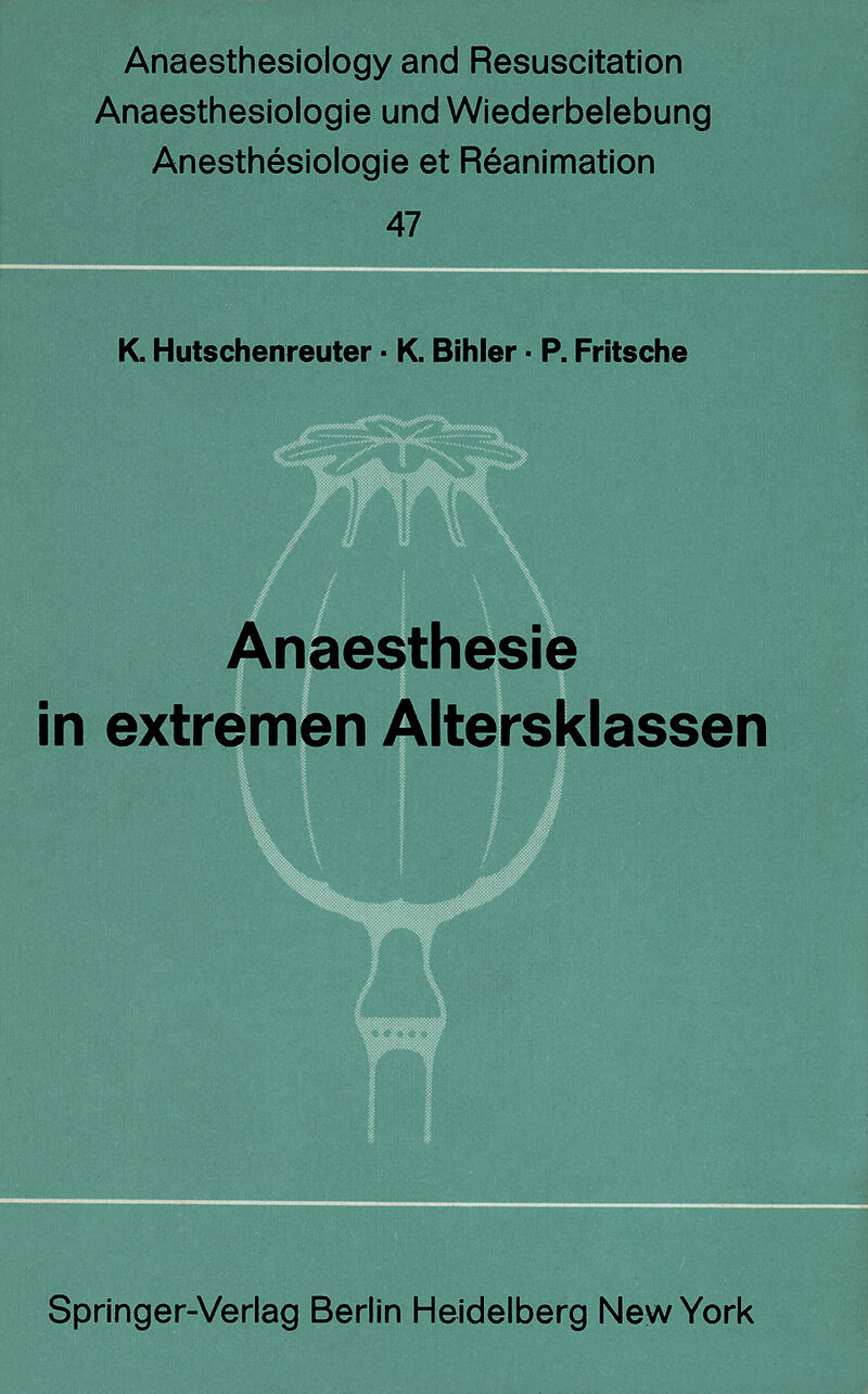 I. Vorträge zu dem Hauptthema Anaesthesie bei Neugeborenen und Säuglingen.- Besonderheiten der Pharmakotherapie der ersten Lebensjahre.- Akute Elementargefährdung und Reanimation des Neugeborenen.- Erstversorgung Neugeborener nach Schnittentbindungen.- Das Hyalin-Membran-Syndrom der Früh- und Neugeborenen-Ätiologie und Überlegungen zur Frage einer kausalen Therapie aus der Sicht des Anaesthesisten.- Beatmung bei Neugeborenen und Oberflächenspannung in der Lunge.- Indikationen der verschiedenen Beatmungsformen.- Über die Beeinflussung von Ventilation und Atemmechanik durch Narkosen.- Elektrokardiographische Untersuchungen zur Succinylbradykardie bei Säuglingen.- Intraoperative Veränderungen des zentralen Venendruckes beim Säugling.- Veränderungen der Homoiostase durch die präoperative Nahrungskarenz beim Säugling.- Diagnostik, Prophylaxe und Therapie operations- und narkosebedingter Störungen im Elektrolyt-, Wasser- und Säure-Basen-Haushalt bei Neugeborenen und Säuglingen.- Vergleichende Untersuchungen zur Begrenzung des Wärmeverlustes beim Säugling während der Anaesthesie.- Anaesthesie bei Neugeborenen und Säuglingen in der Neurochirurgie.- Erfahrungen mit einer sterilen Narkosetechnik bei Spalten-Operationen.- Erfahrungen mit der Anaesthesie für Palliativoperationen und Totalkorrekturen ohne Herz-Lungen-Maschine bei congenitalen Herz-vitien im Säuglings- und Kleinkindesalter unter 2 Jahren.- II. Vorträge zu dem Hauptthema Anaesthesie im höheren Lebensalter.- Grundprinzipien der Narkoseführung im Senium.- Geriatrische Anaesthesie (Korreferat).- Die Allgemeinnarkose im Greisenalter.- Anaesthesie im höheren Lebensalter aus chirurgischer Sicht.- Erfahrungen bei der Anaesthesie alter Patienten in der Neurochirurgie.- Besonderheiten derNeuroleptanalgesie im Greisenalter.- Vergleichende Untersuchungen von Halothan- und Neuroleptanaesthesie bei geriatrischen Patienten.- Thanatogenetische Faktoren bei Eingriffen im höheren Lebensalter.- Die postoperative Früh- und Spätmortalität bei über 80 jährigen (Auswertung von über 910 Allgemeinanaesthesien).- The Utilization of Ketalar in Geriatric Anaesthesia.- Verhalten des Serumspiegels von Hexobarbital und Thiopental beim alten Patienten.- L'hyperventilation sous anesthésie générale chez le vieillard.- Prä- und postoperative intermittierende assistierte Spontanatmung eine Methode zur Verhütung und Behandlung der inkompletten respiratorischen Insuffizienz nach Eingriffen im höheren Lebensalter.- Die getriggerte apparativ assistierte Eigenatmung und ihre Auswirkungen auf die postoperative Hypoxämie des älteren Patienten.- Prä-, intra- und postoperative Veränderungen des arteriellen Sauerstoffdruckes beim alten Menschen.- Blutvolumen und Kapazität des Gefäßsystems bei alten chirurgischen Patienten.- Einfluß der Narkose auf die Beziehung Blutmenge-Herzzeitvolumen im höheren Lebensalter.- Die Wahl der Anaesthesie für alte Menschen: Regionale oder allgemeine Betäubung.- Die derzeitige Stellung der Lokalanaesthesie.- Indikationen und Möglichkeiten der Caudalanaesthesie unter Berücksichtigung des hohen Lebensalters.- Nierenfunktion unter Spinalanaesthesie mit Citanest bei alten Patienten.- Hirnfunktion alter Menschen unter dem Einfluß von Narkose und Operation.- Pathophysiologie der postoperativen Veränderungen nach Prostatektomie.