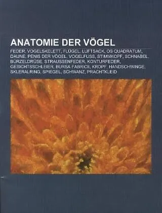 Quelle: Wikipedia. Seiten: 36. Kapitel: Feder, Vogelskelett, Flügel, Luftsack, Os quadratum, Daune, Penis der Vögel, Vogelfuß, Stimmkopf, Schnabel, Bürzeldrüse, Straußenfeder, Konturfeder, Gesichtsschleier, Bursa Fabricii, Kropf, Handschwinge, Skleralring, Spi...