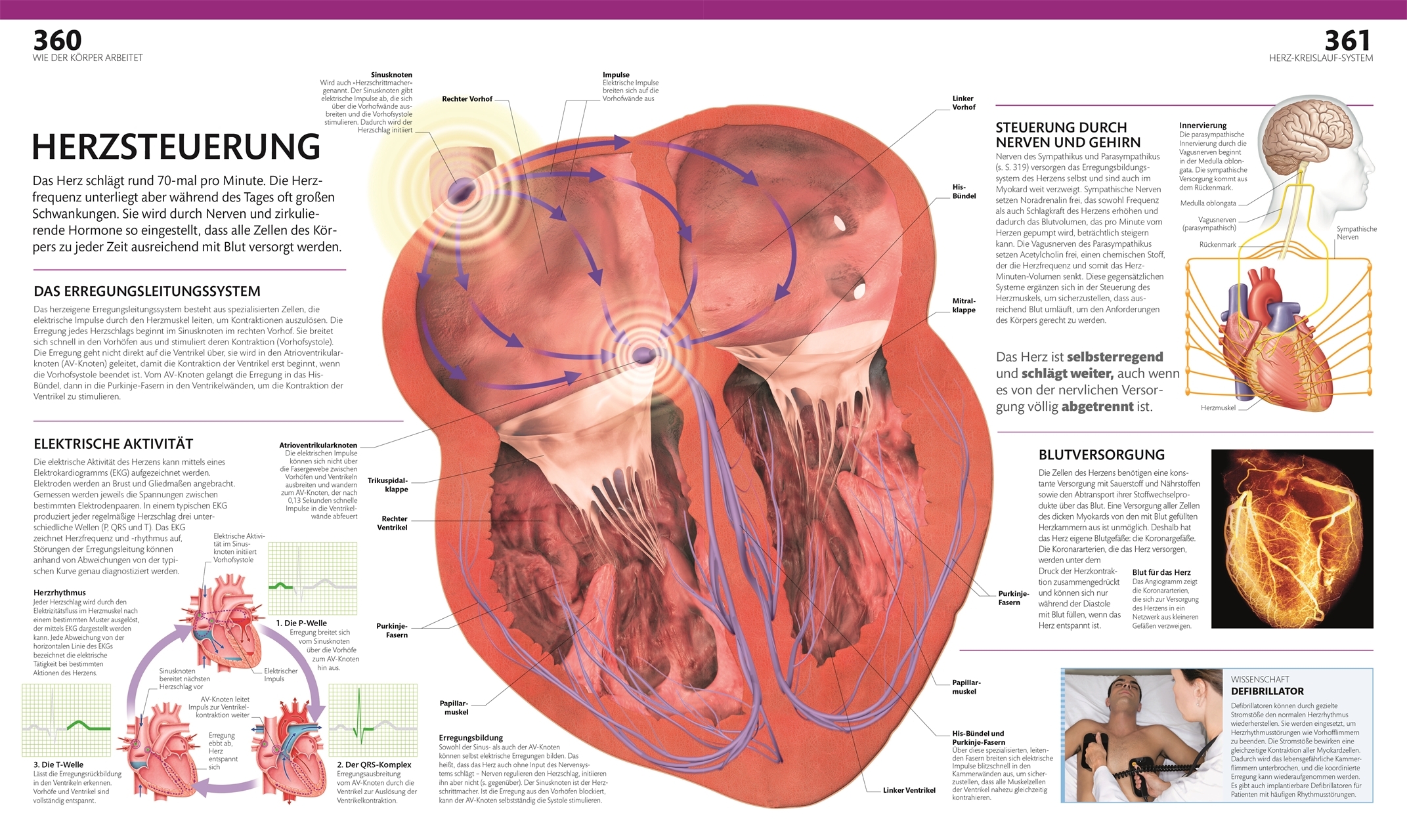 Wie groß ist das Herz? Wie funktioniert das Nervensystem? Und wie wird aus einem Embryo ein ausgewachsener Mensch? Die illustrierte Enzyklopädie beantwortet ausführlich alle Fragen zur Physiologie und Anatomie des Menschen. In fünf umfangreichen Kapiteln führt es die Leserinnen durch sämtliche Körperregionen, zeigt anschaulich, *wie der Körper funktioniert , welche Entwicklungsstadien wir in unserem Leben durchlaufen und wie die Evolution unsere Entwicklung beeinflusst hat. Von der Fortpflanzung über Haut, Haare und Nägel bis zum komplexen Verdauungssystem: Spektakuläre, teilweise maßstabsgetreue Abbildungen** machen dieses Anatomiebuch zum ultimativen Nachschlagewerk für alle, die sich für Medizin, Biologie und den menschlichen Körper interessieren.