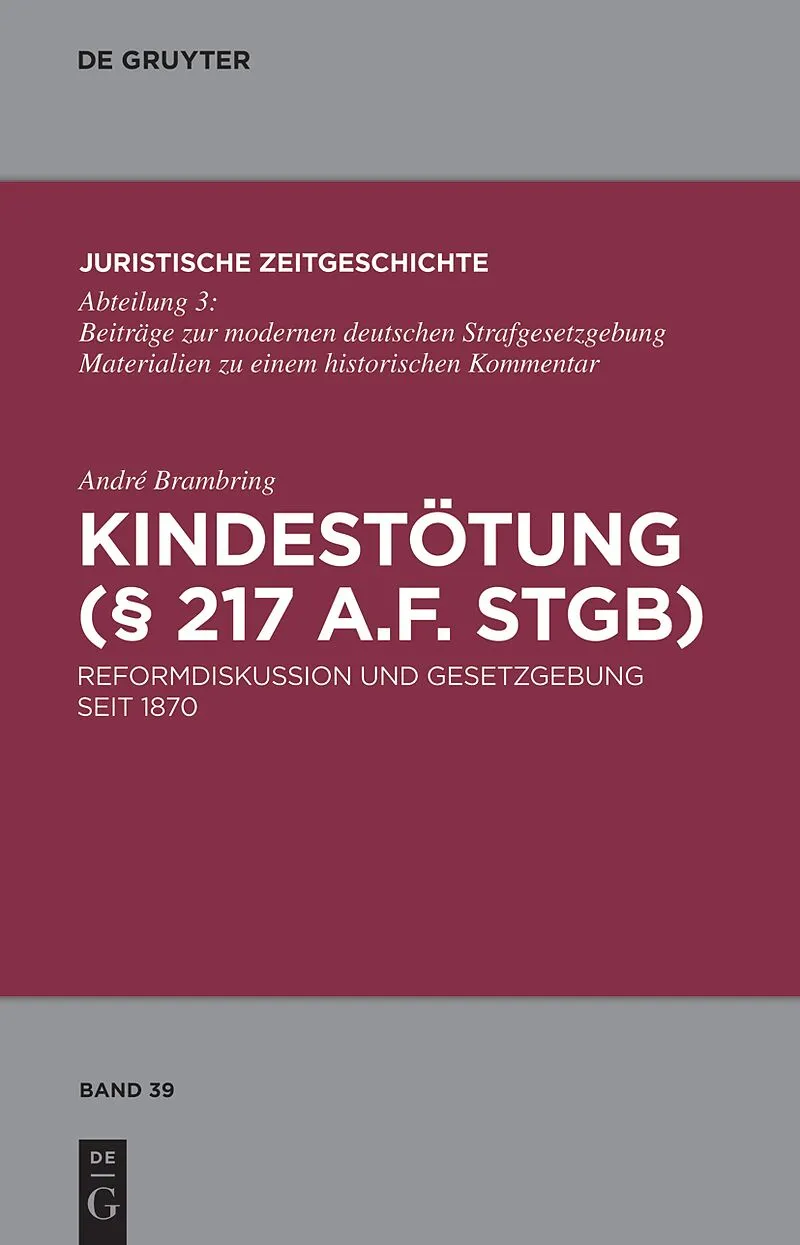 The subject of this work is the reform debate and legislation pertaining to the facts of the case as set out in §217 of the old version of the German Criminal Code (StGB) from 1870 until its annulment under the Sixth Criminal Law Reform Act (StrRG) on 1 April ...