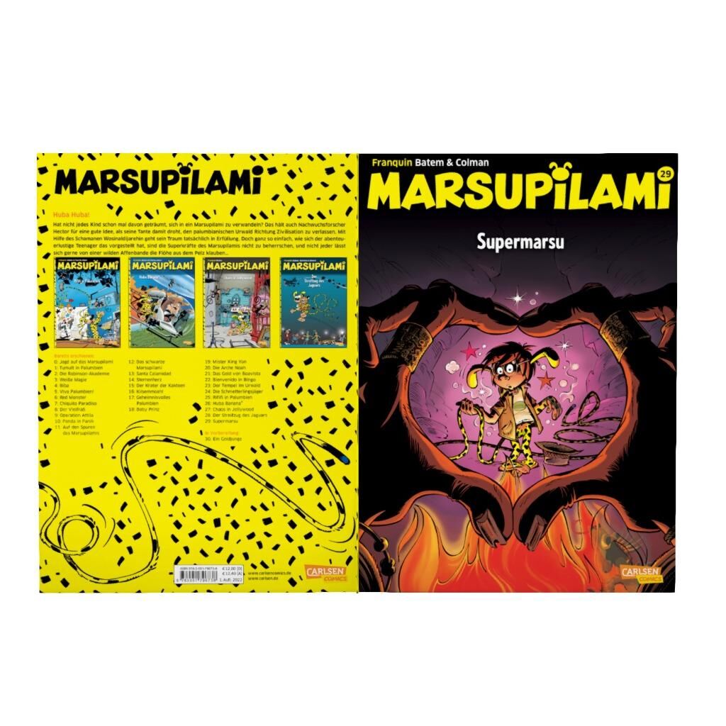 Das Marsupilami ist eines der tollsten Tiere des palumbianischen Dschungels! Es ist super intelligent, super stark und es kann super wütend werden, wenn jemand seiner Familie oder dem Dschungel etwas Böses will. Dann macht es aus seinem acht Meter langen Schwanz eine Keule und verteilt Beulen für die Bösewichte!
