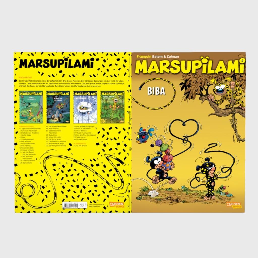 Der Dschungel ist ein gefährlicher Ort. Er wimmelt vor giftigen Schlangen, hungrigen Piranhas und hinterlistigen Raubkatzen. Und keiner dieser Räuber würde ein leckeres, kleines Marsupilami verschmähen! Also ist die kleine Biba, ein schwarzes Marsupilami mit gelben Punkten, ganz schön gefährlich unterwegs, so ganz allein! Bobo ist sofort verliebt in die temperamentvolle Marsu-Dame, auch wenn die erst mal nichts von ihrem neuen Verehrer hält. Und dann wären da noch diverse ungewaschene Jäger, die alle die Gefahren des Dschungels unterschätzen...