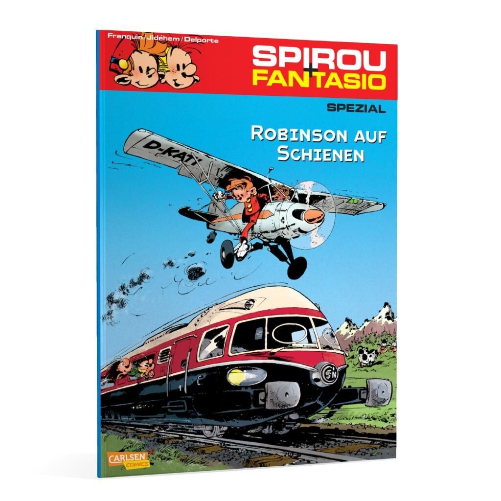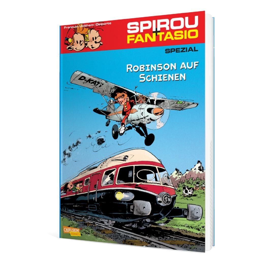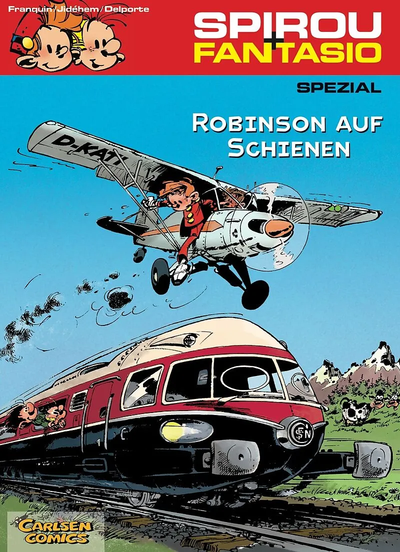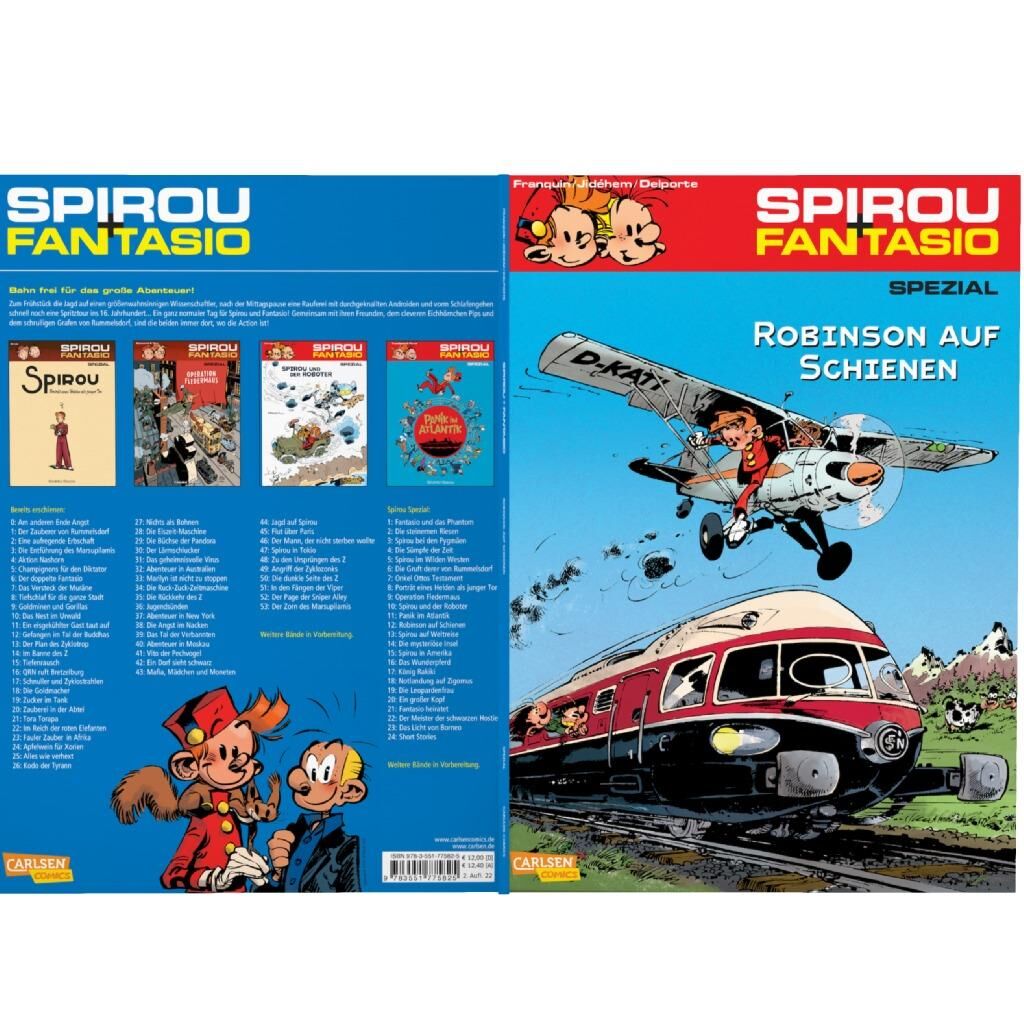 Sänk ju for drävelling Dieser Spezial-Band enthält eine ungewöhnliche Geschichte, in der Spirou, Fantasio und Gaston ein gemeinsames Abenteuer erleben. Ein atomgetriebener Zug rast führerlos durch Europa, an Bord befindet sich außer unseren Freunden der franzö...