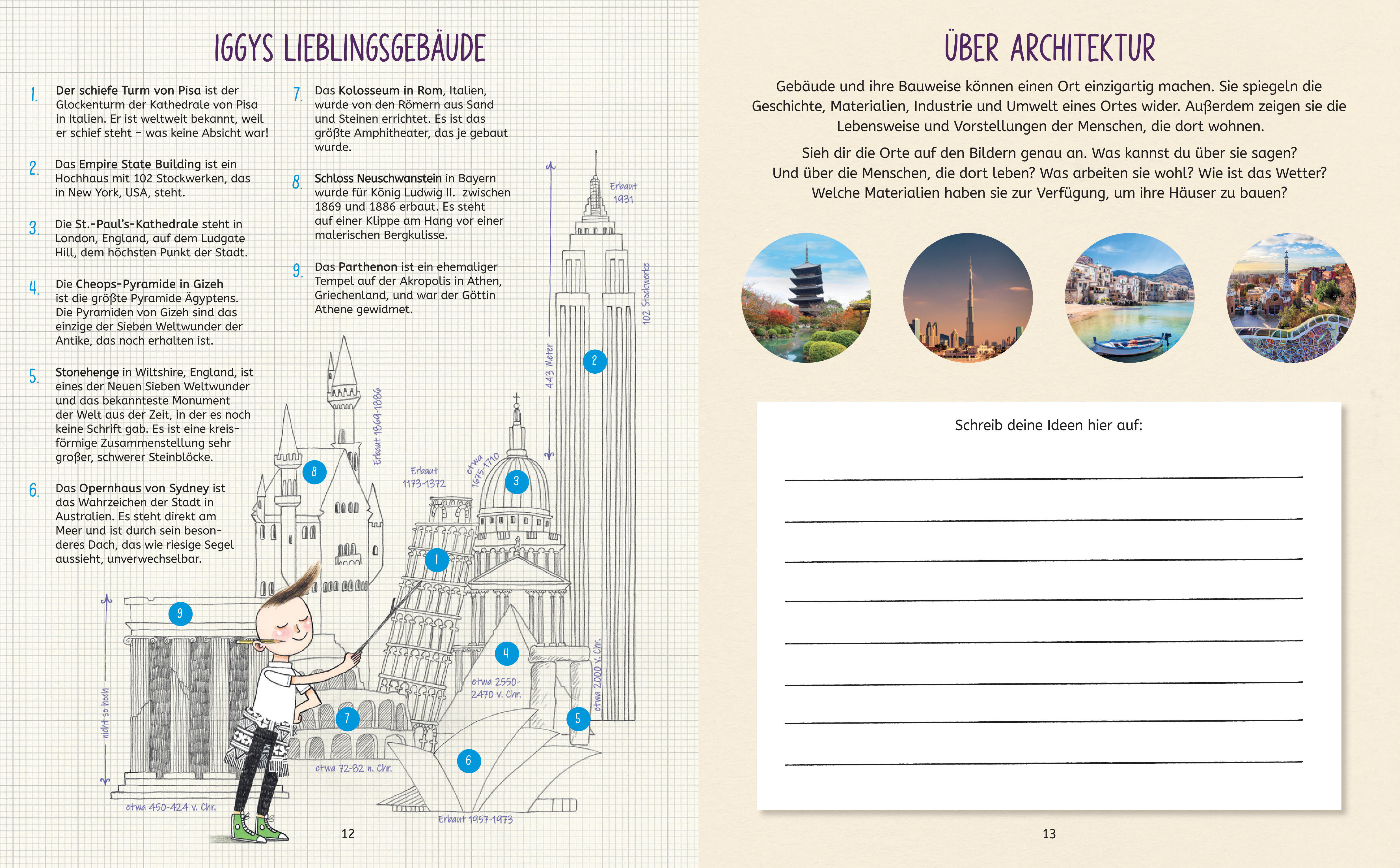 In diesem kreativen Mitmachbuch geht's zusammen mit Iggy Peck und der Forscherbande in die Welt der Architektur. Hier werden Kinder angeleitet, selbst eine Stadt zu entwerfen, eine Wohnung auf dem Mars zu konstruieren, eine Brücke aus Marshmallows und Spaghet...