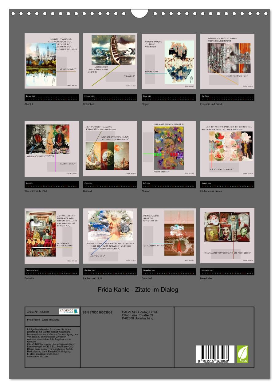 Frida Kahlo - Zitate im Dialog (Wandkalender 2026 DIN A3 hoch), CALVENDO Monatskalender