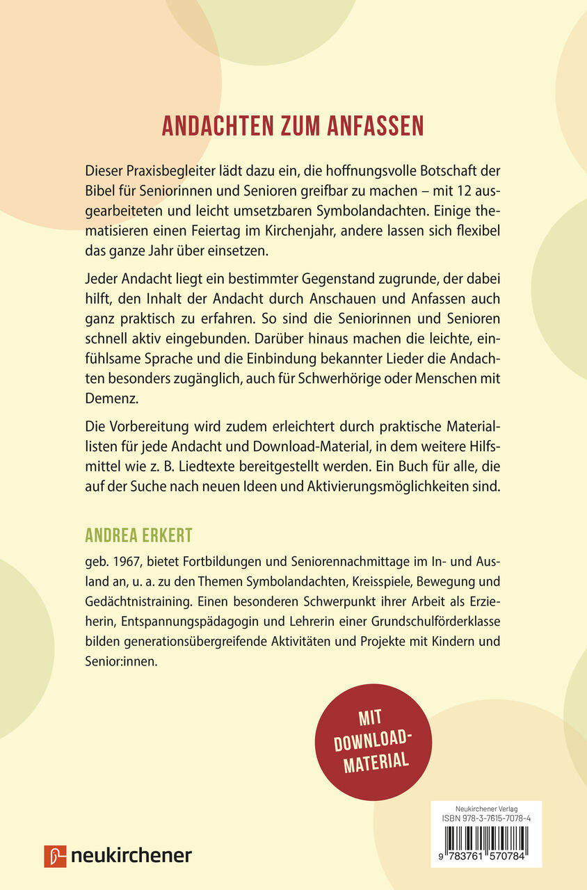 Seniorinnen und Senioren brauchen Hoffnung, Zuversicht und Kraft, die sie im vertrauten Kreis und durch Gottes Wort erhalten. Diese zwölf Symbolandachten zu zwölf Gegenständen laden herzlich dazu ein auch Schwerhörige, Menschen, die an Demenz erkrankt sind ode...