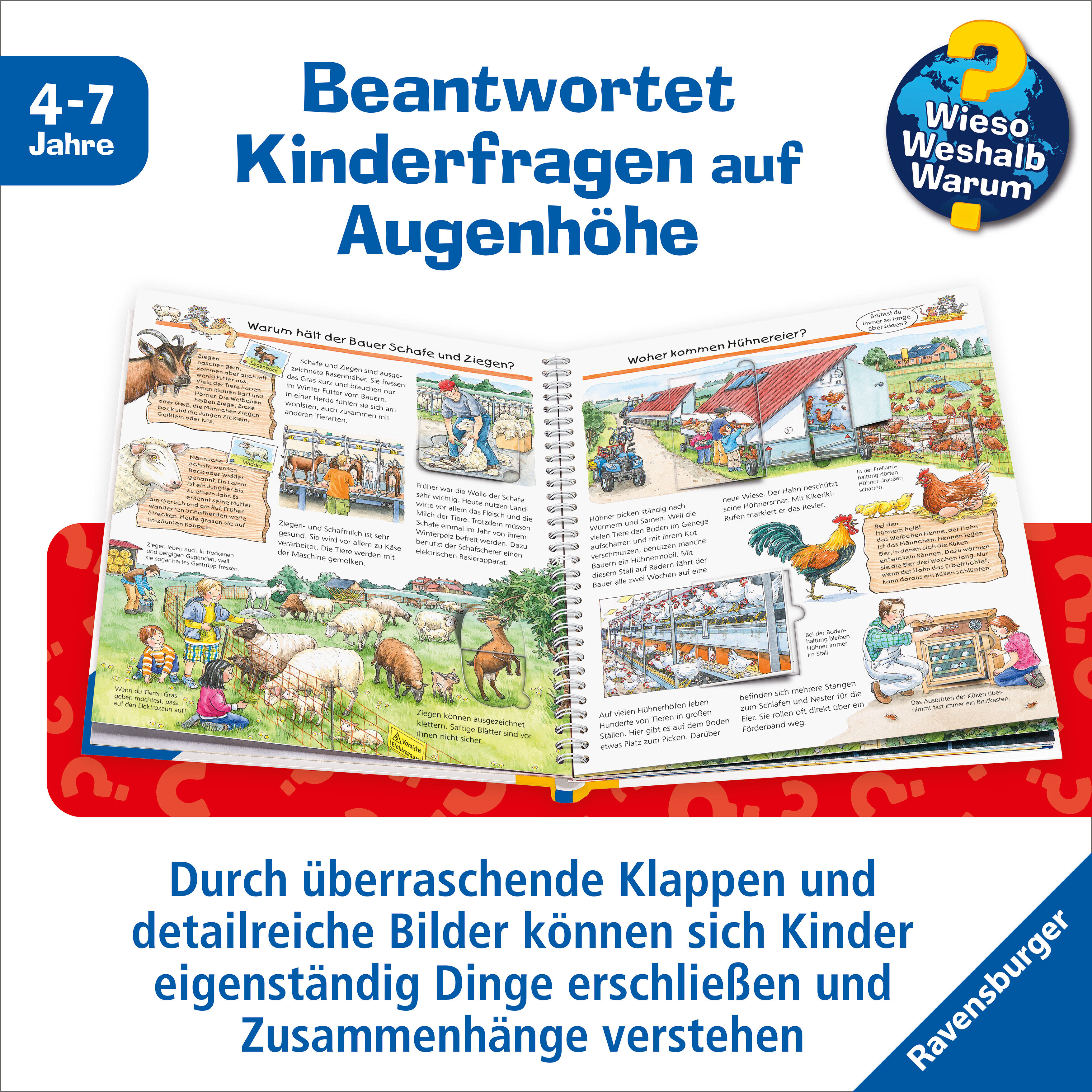 Wieso? Weshalb? Warum?, Band 3: Alles über den Bauernhof Ein Besuch im Stall bei Kühen, Hühnern und Schweinen sowie auf der Weide bei Schafen und Ziegen zeigt: Bauer und Bäuerin haben von morgens bis abends alle Hände voll zu tun. Zum Glück helfen Maschinen be...