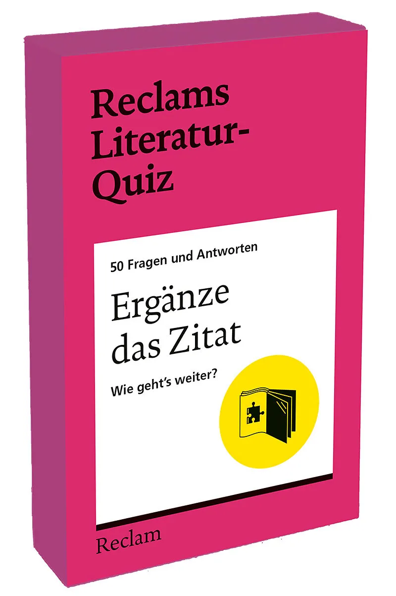 Zitate aus Literaturklassikern vervollständigen mit Reclams Literatur-Quiz »Friede den Hütten! Krieg den « wem? »Unfassbar ist der Mensch, den man « was? Diese und viele andere spannende Fragen warten in Reclams Literatur-Quiz auf Literaturfans und Vielleser:...