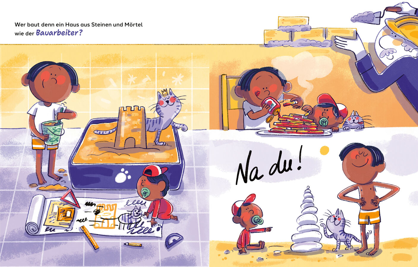 Entdecke die Welt der Berufe auf freche, bunte und humorvolle Weise! Ein inklusives Bilderbuch für Kinder ab 4 Jahren, das Mut, Neugier und eigene Stärken fördert mit Fragen und Bildern zum Mitdenken und Mitmachen. Wer klettert denn so hoch und mutig wie die ...