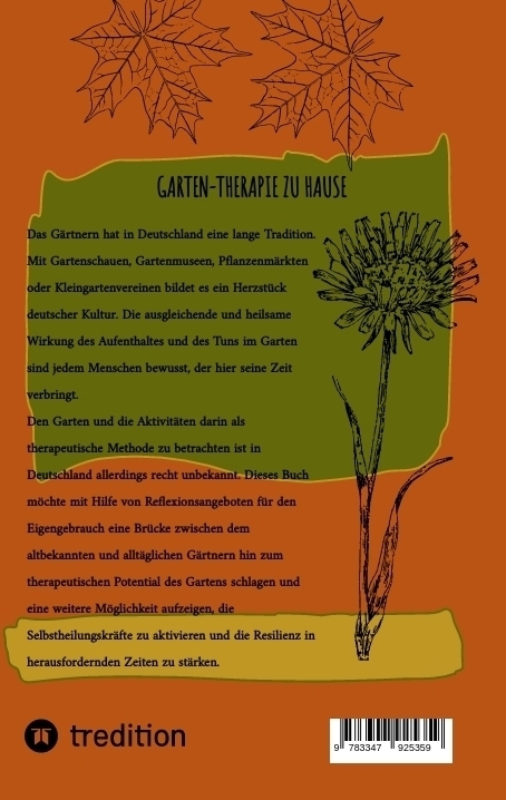 Das Buch gibt einen kurzen Überblick über die Gartentherapie als therapeutische Methode. Daran schließt ein Praxisteil an, in dem zu verschiedenen Themen Reflexionsübungen für das Gärtnern im privaten Umfeld angeboten werden. Der Garten dient hier als Methaphe...