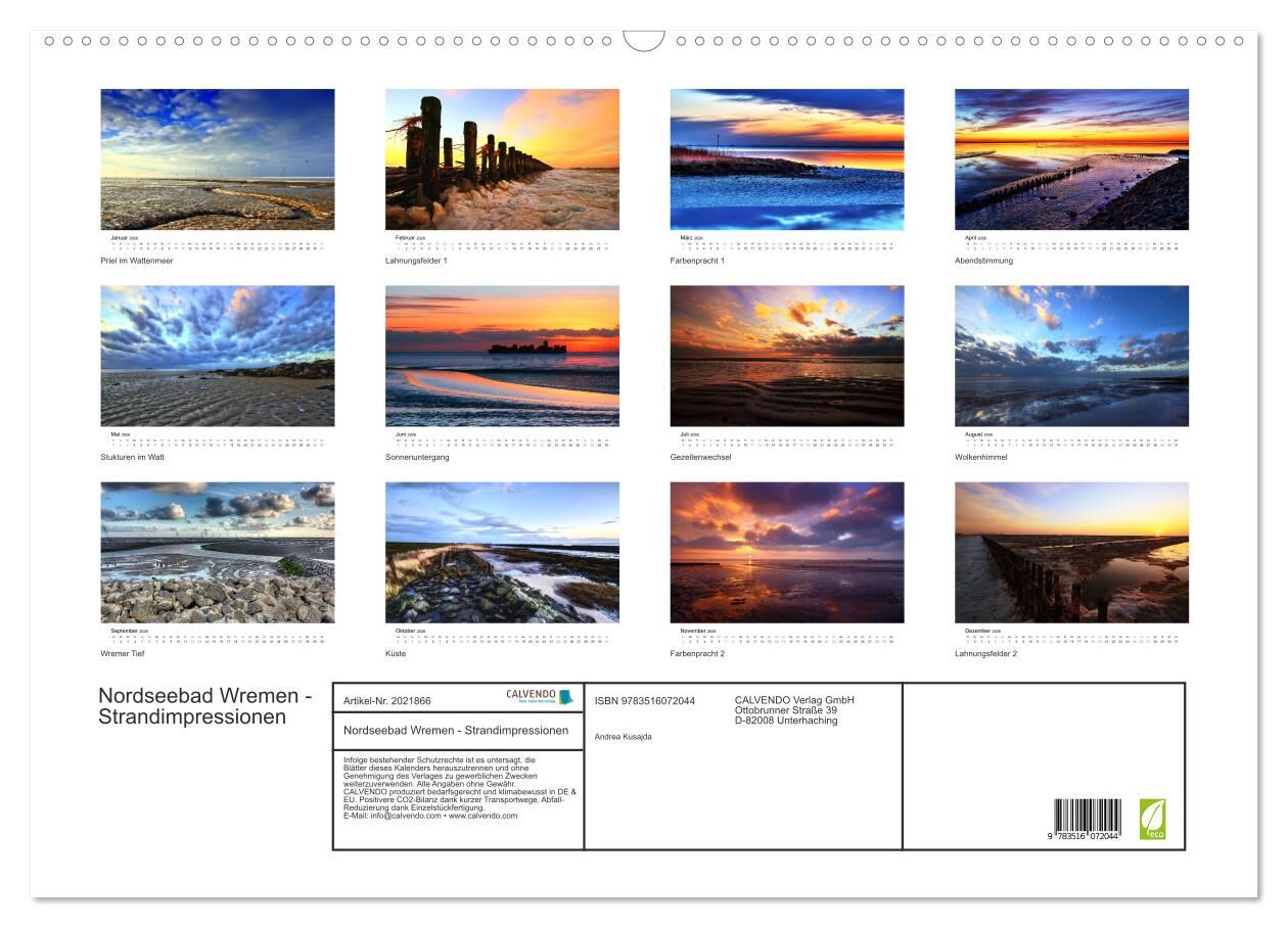 Nordseebad Wremen - Strandimpressionen (Wandkalender 2026 DIN A2 quer), CALVENDO Monatskalender