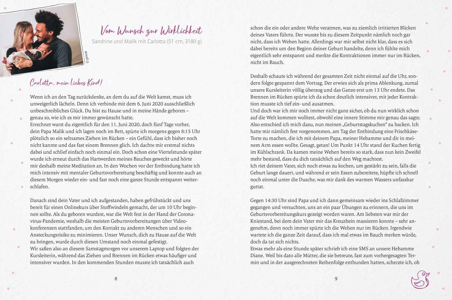 Eltern erzählen in emotional ergreifenden Briefen, wie die letzten 24 Stunden bis zur Geburt verlaufen sind und wie es sich angefühlt hat, das eigene Kind zur Welt zu bringen. Heitere und schöne Begebenheiten, aufregende, dramatische und ungewöhnliche Erlebnis...