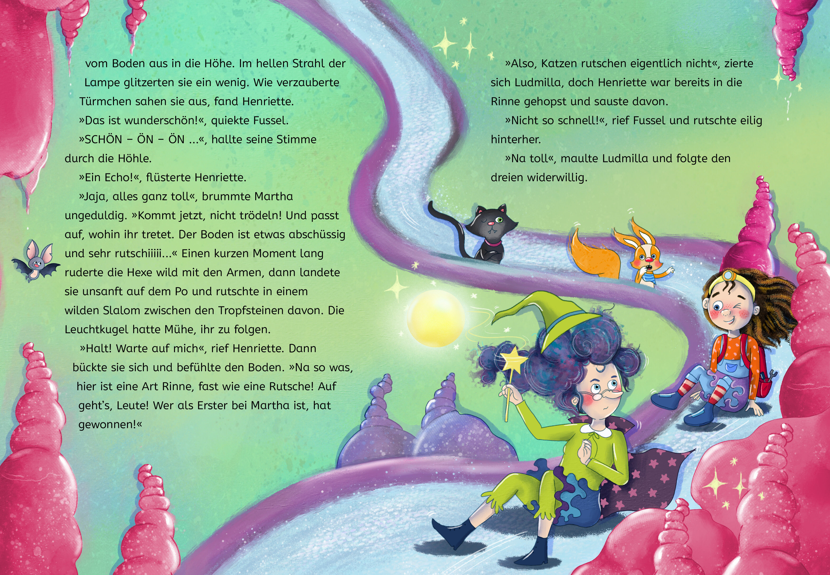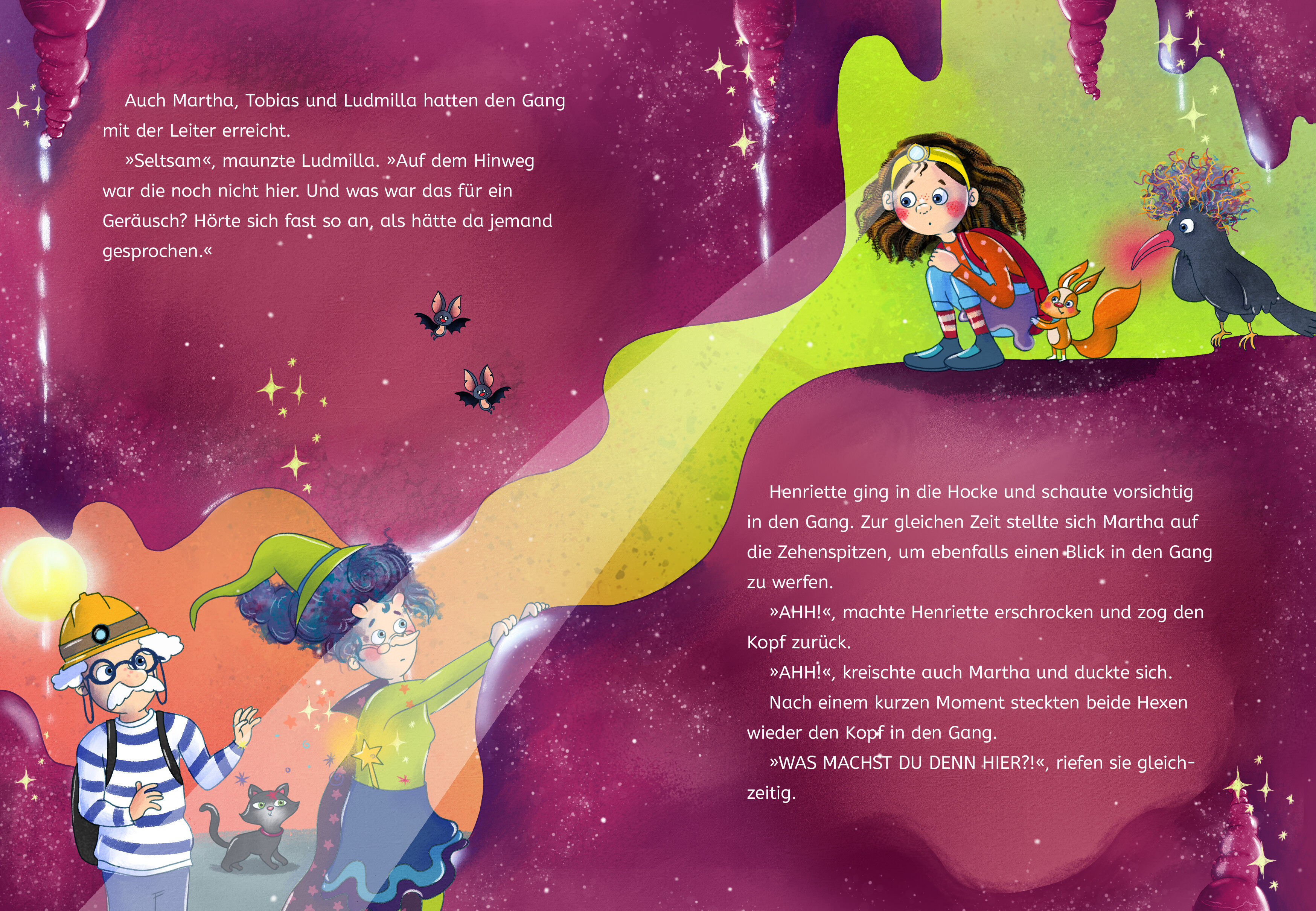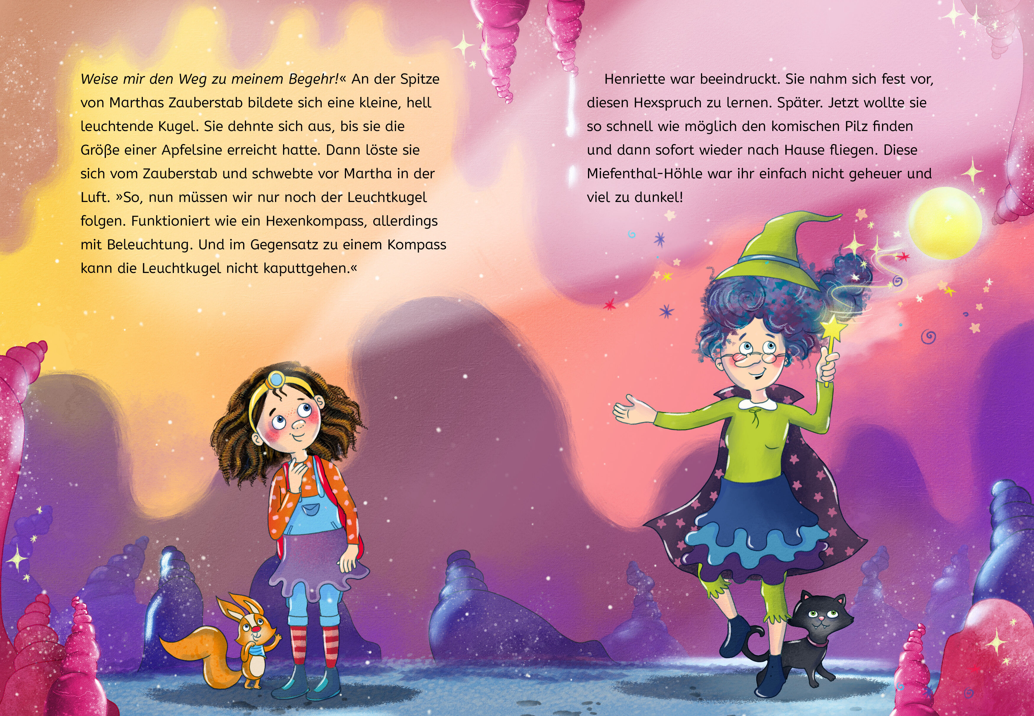 Höhlen-Hokuspokus mit Zauberstab und Stirnlampe Henriette Huckepack und Großtante Martha brechen zu einer Expedition in die dunkle Miefenthal-Höhle auf. Hier wächst der Fungus Muffelkuss, ein magischer Pilz, den die alte Hexe dringend für ihre Zaubertränke be... Höhlen-Hokuspokus mit Zauberstab und Stirnlampe