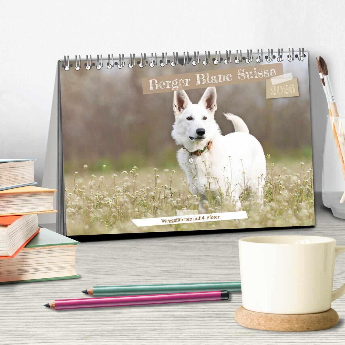 Berger Blanc Suisse - Weggefährten auf 4 Pfoten (Tischkalender 2026 DIN A5 quer), CALVENDO Monatskalender