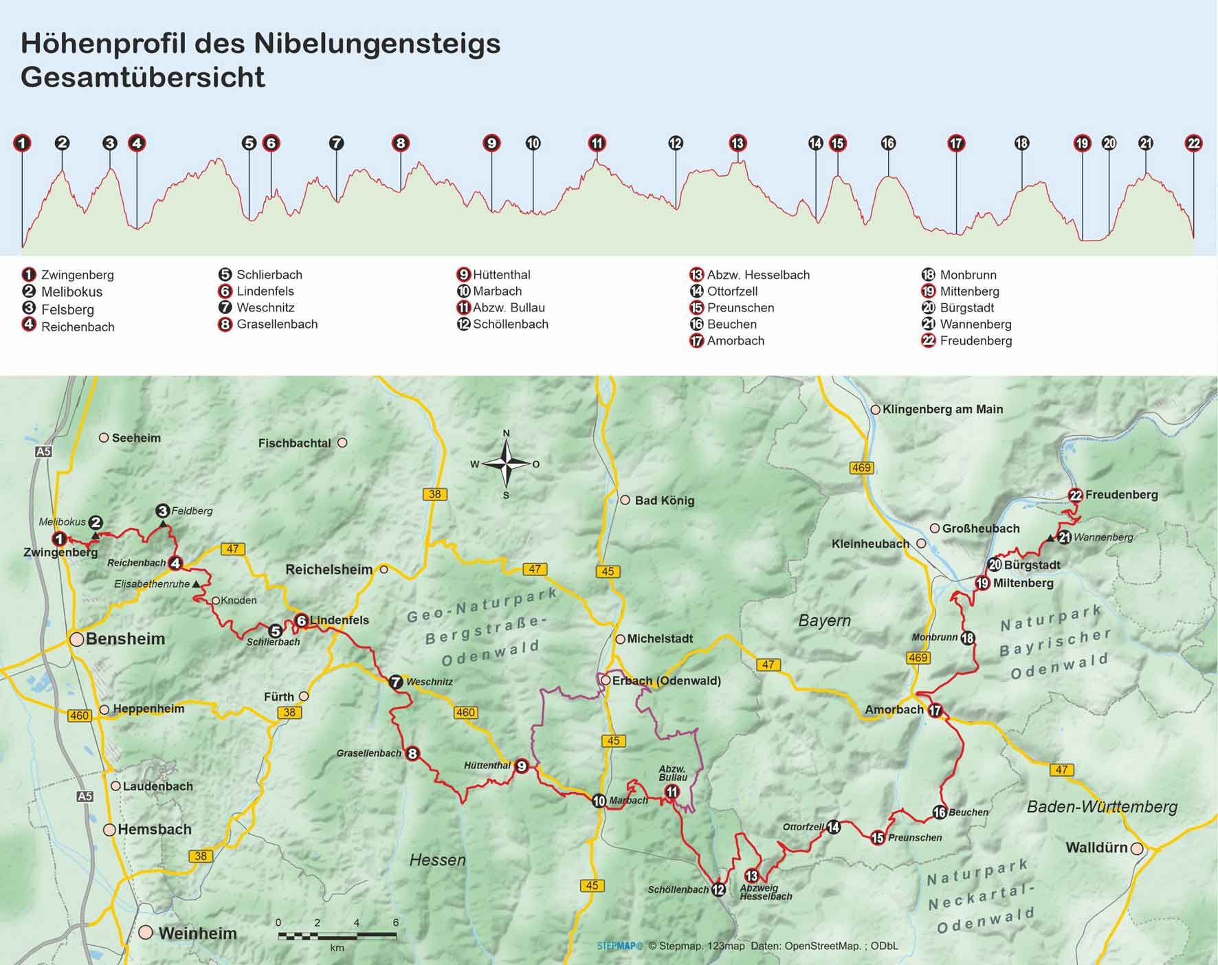 Einen gelungenen Mix aus herrlicher Natur und beschaulichen Städtchen bietet der Nibelungensteig, der im hessischen Zwingenberg beginnt und im baden-württembergischen Freudenberg am Main endet. Die ca. 129 km des Steiges sind in 10 Tagesetappen (11-15 km) eing...