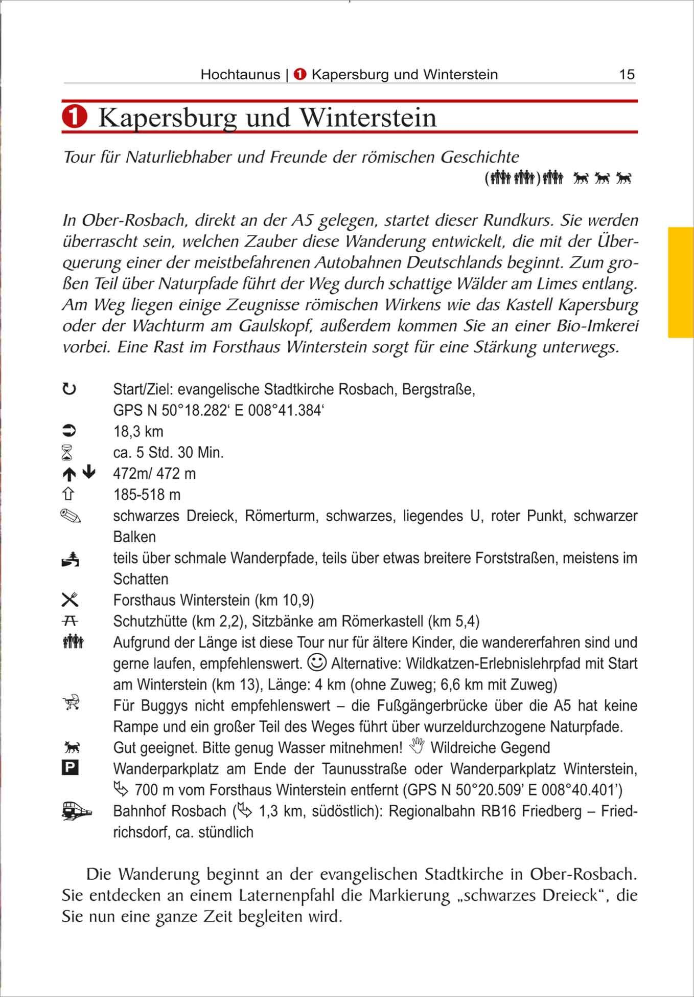 Die Autorin beschreibt 25 Wandertouren im Hochtaunus und im Rheingau, die durch ihre Vielfältigkeit gekennzeichnet sind. Von der kurze Wanderung, die mit Geocaches gewürzt ist bis zum anspruchsvollen Wochenendtrip mit Klettersteig-Einlagen am Rhein ist jede Sp...