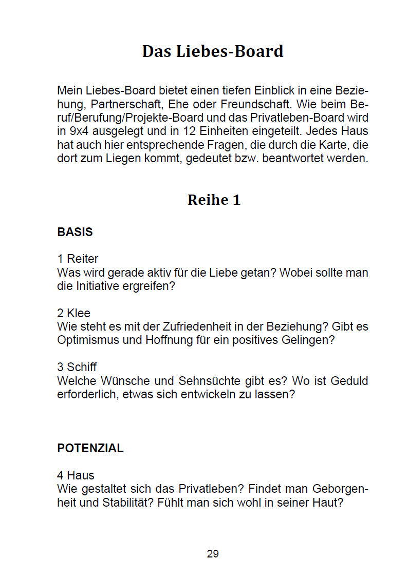 Die große Tafel mit den Lenormandkarten mal anders gedeutet Separate Tafeln zu den Themen Liebe, Beruf und Privatleben Folgende Deutungen sind enthalten: Die 9x4 Legung 10 x 4-Legung mit den Zusatzkarten von Angelina Schulze Das Liebes-Board Große Tafel Privat...