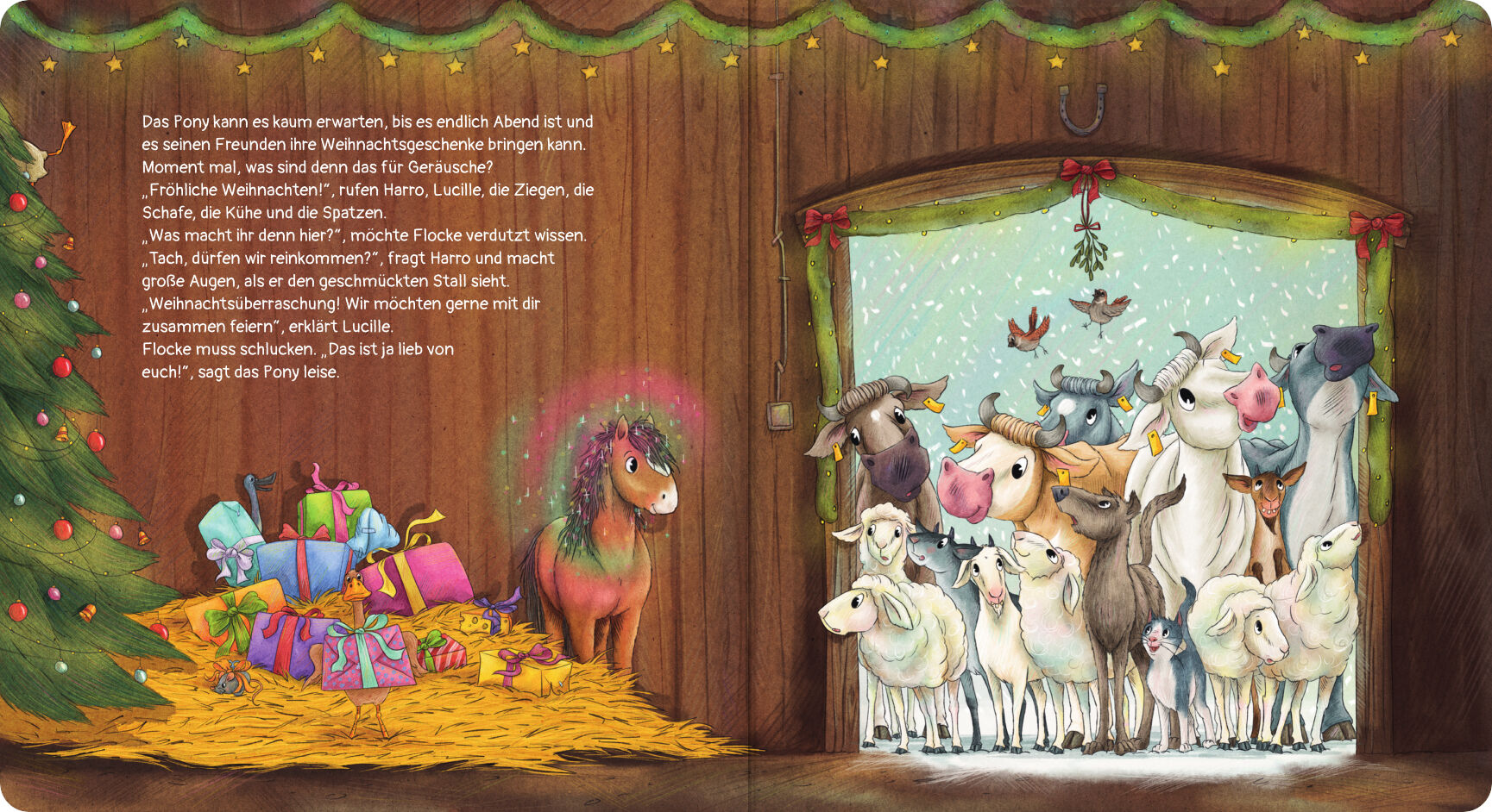 Ein bezauberndes Kinderbuch zu Weihnachten - ein Bilderbuch mit einer "echten" Mähne auf dem Cover für Kinder ab 4 Jahren. Die Geschichte erzählt von einem magischen Pony, aber auch von der tierischen Gemeinschaft auf dem Bauernhof und der Vorfreude auf Weihna...