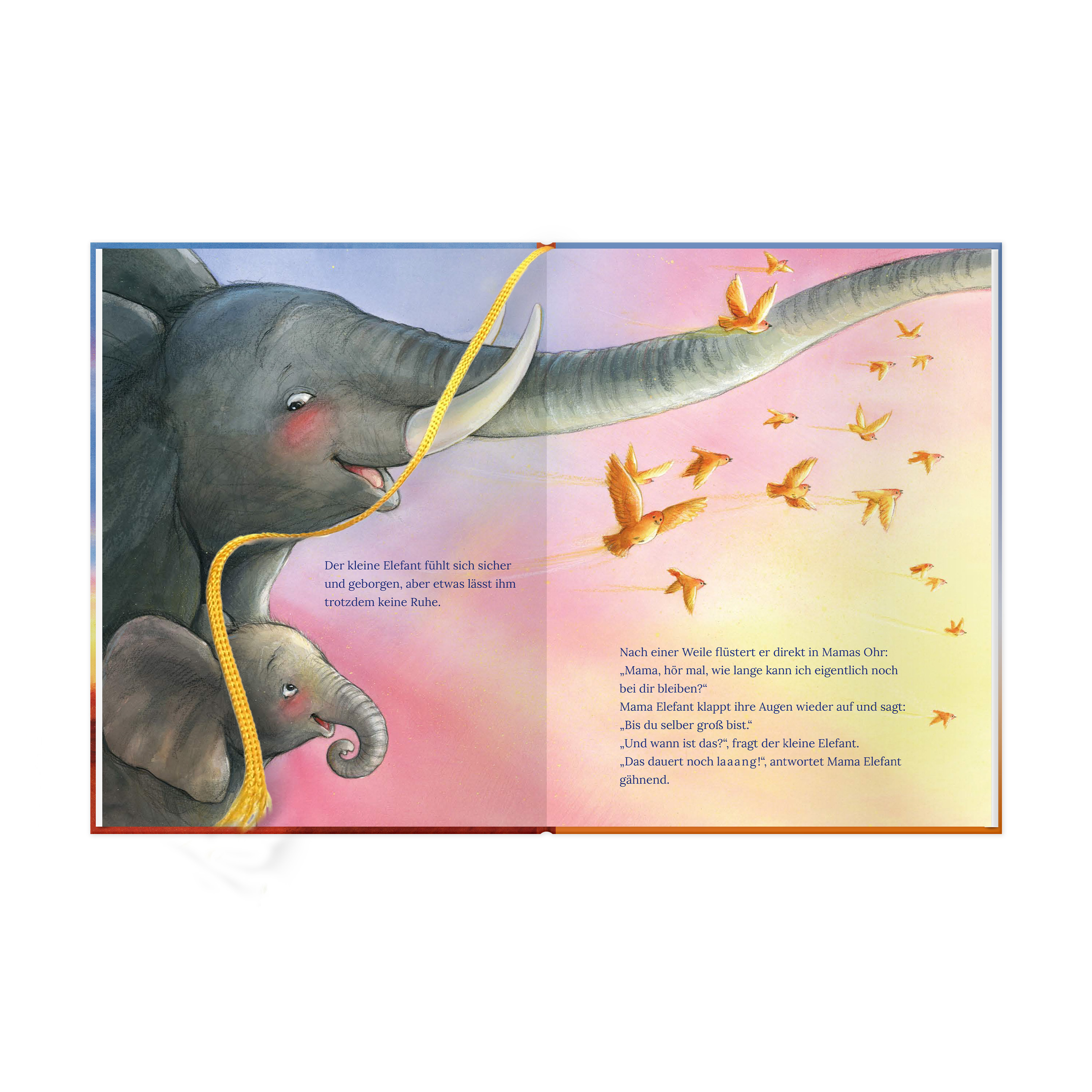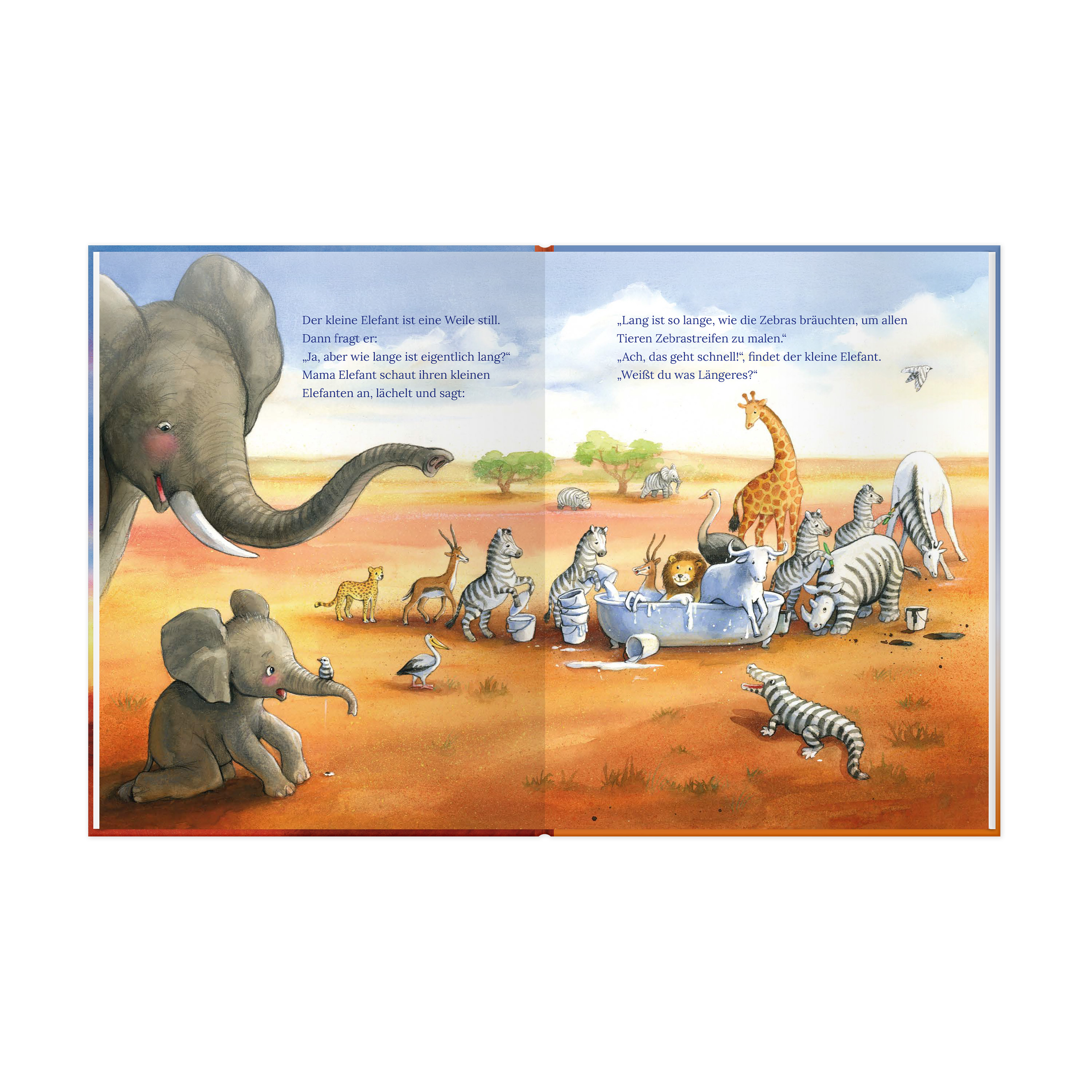 Der kleine Elefant möchte wissen, wie lange er noch bei seiner Mama bleiben darf. "Das dauert noch lang", antwortet Mama Elefant. Der kleine Elefant ist eine Weile still. Dann fragt er: "Ja, aber wie lange ist eigentlich lang?" Und dafür hat Mama Elefant eine ...