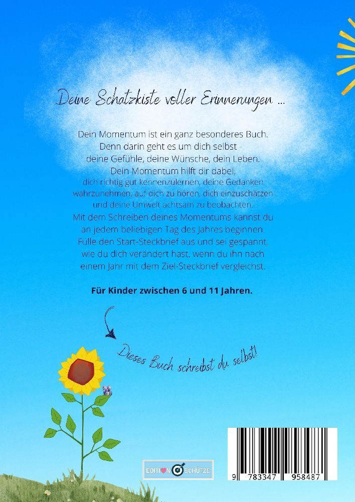 Dieses Buch ist etwas Besonderes. Denn du schreibst es selbst! Das Momentum ist DEINE Sammlung aller wichtigen Momente während eines ganzen Jahres. Du wirst eine ganze Menge Gefühle, Wünsche, Stimmungen, Gedanken und Erlebnisse notieren, aufschreiben, sammeln ...
