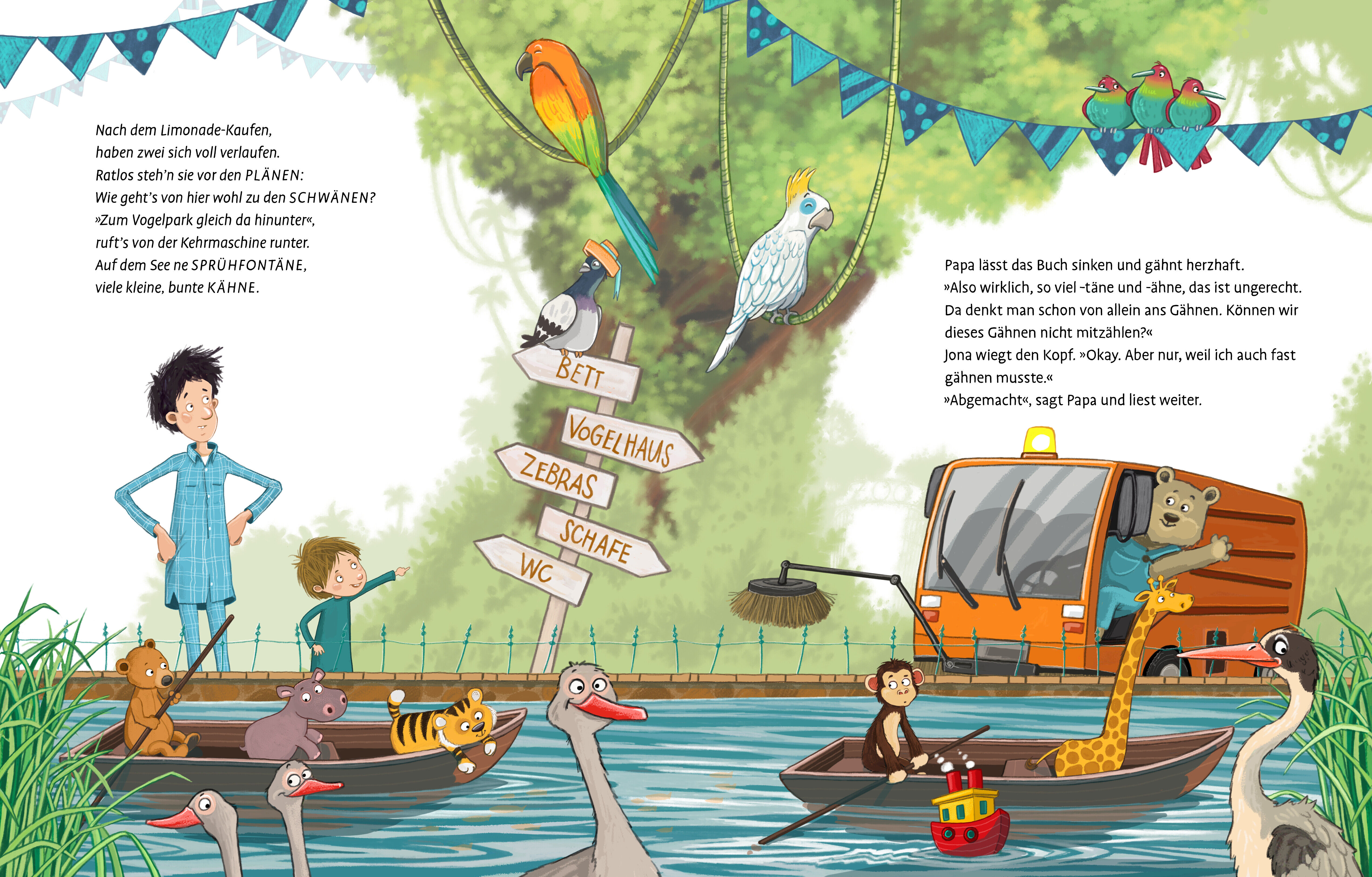 Eine Einschlafgeschichte, der man nicht widerstehen kann! Jona hat ein neues Buch, das Papa heute vor dem Einschlafen vorlesen soll. Es heißt: »Wer zuerst gähnt, hat verloren«. Schnell wird ein Wettstreit daraus, wer von den beiden zuerst gähnen muss. Und vie...