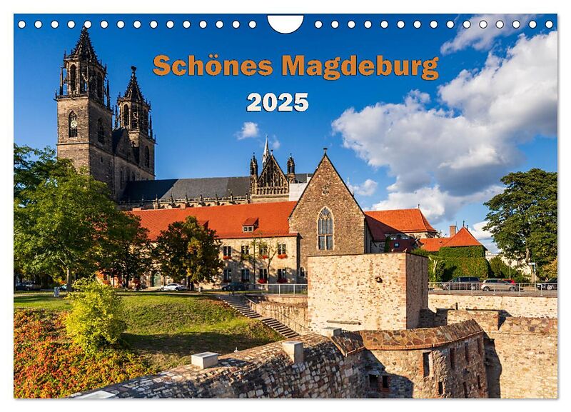 Ein Kalender der mit 12 verschiedenen, farbenfrohen Magdeburg-Motiven, von Magdeburgs Sehenswürdigkeiten wie dem Magdeburger Dom, dem Herrenkrug und der Elbuferpromenade bis hin zu stimmungsvollen und jahreszeitlich geprägten Momentaufnahmen wie dem gemütliche...