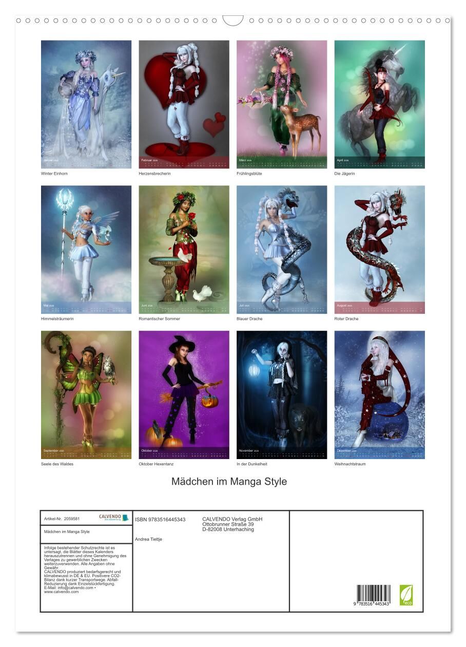 Mädchen im Manga Style (Wandkalender 2026 DIN A2 hoch), CALVENDO Monatskalender