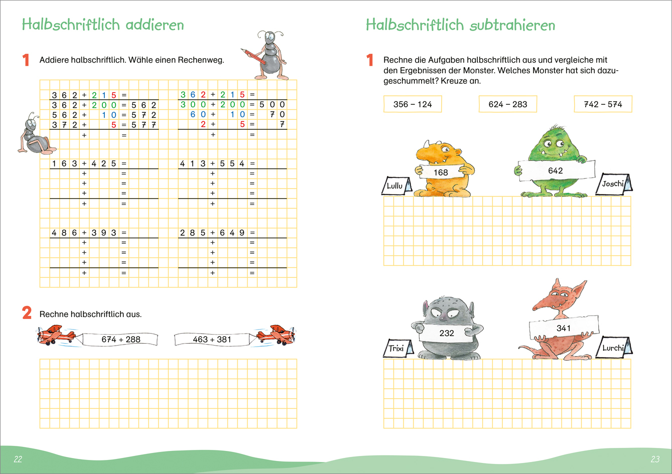 Viele Übungen zum Rechnen bis 1000, zu Geometrie sowie lustige Sach- und Textaufgaben liefert Mein Übungsheft für Mathe 3. Klasse. Die Übungen orientieren sich am Lehrplan der Grundschule und vertiefen den Schulstoff. Das herausnehmbare Lösungsheft zeigt, ob a...