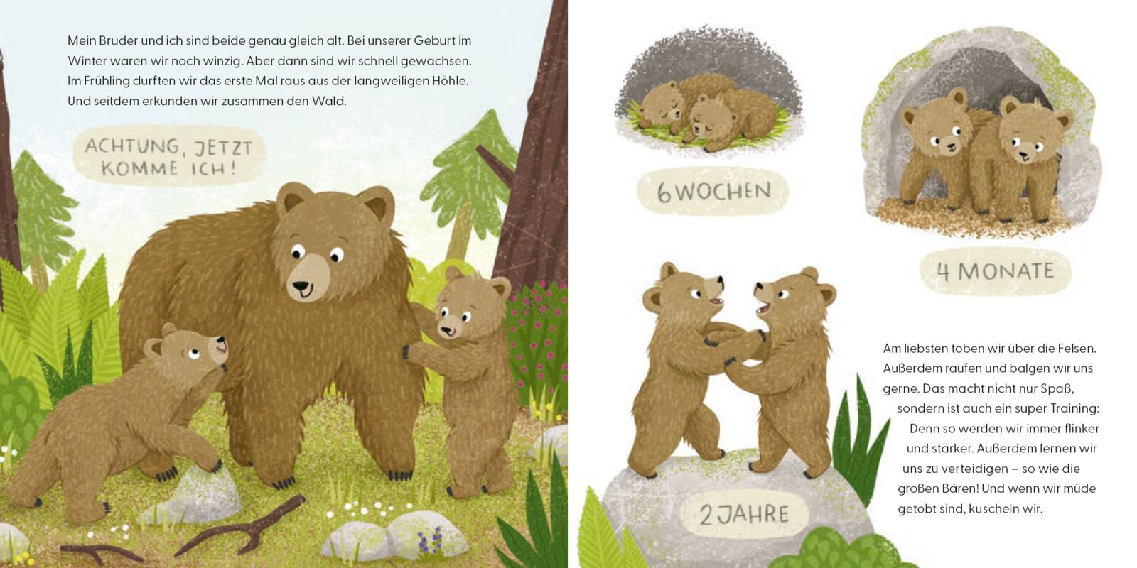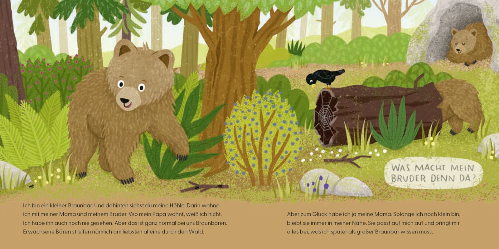 Ein Sach-Bilderbuch für Kinder ab 2 Jahren so niedlich war Sachwissen noch nie! Huhu, siehst du mich? Ich bin der kleine Bär und tapse gerade alleine durch den dichten Wald. Die meiste Zeit spiele und balge ich aber mit meinem Bruder. Unsere Mama bringt uns a...