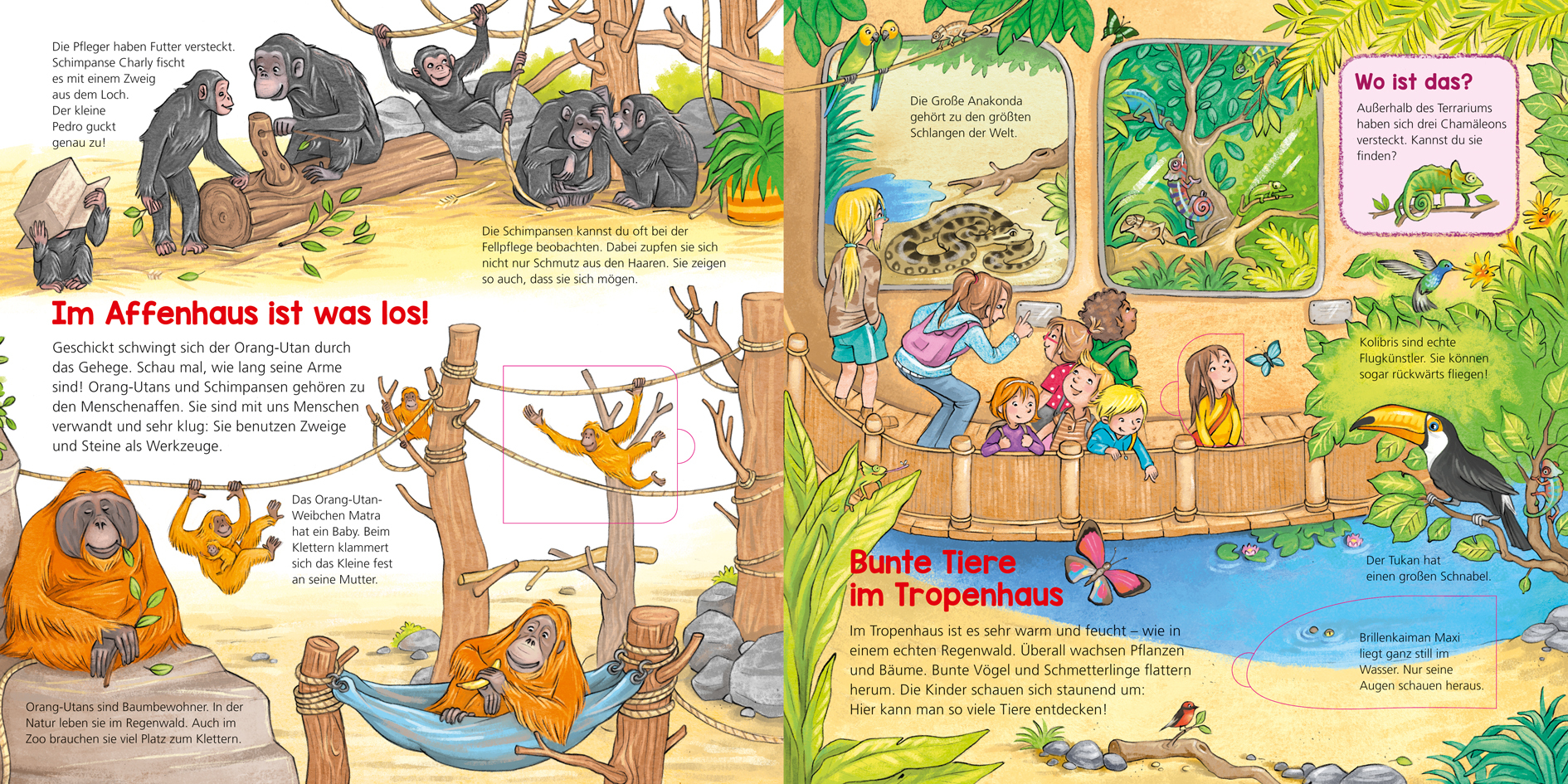 Törööö und roarrr! Beim Stuhlkreis imitieren Kinder Zootiere, die die anderen erraten müssen. Welches Tier bin ich? Was fressen Raubtiere? Welches Tier magst du am liebsten? Ein Zoobesuch zeigt den Kindergartenkindern die vielfältigsten Tiere und Lebensräume, ...